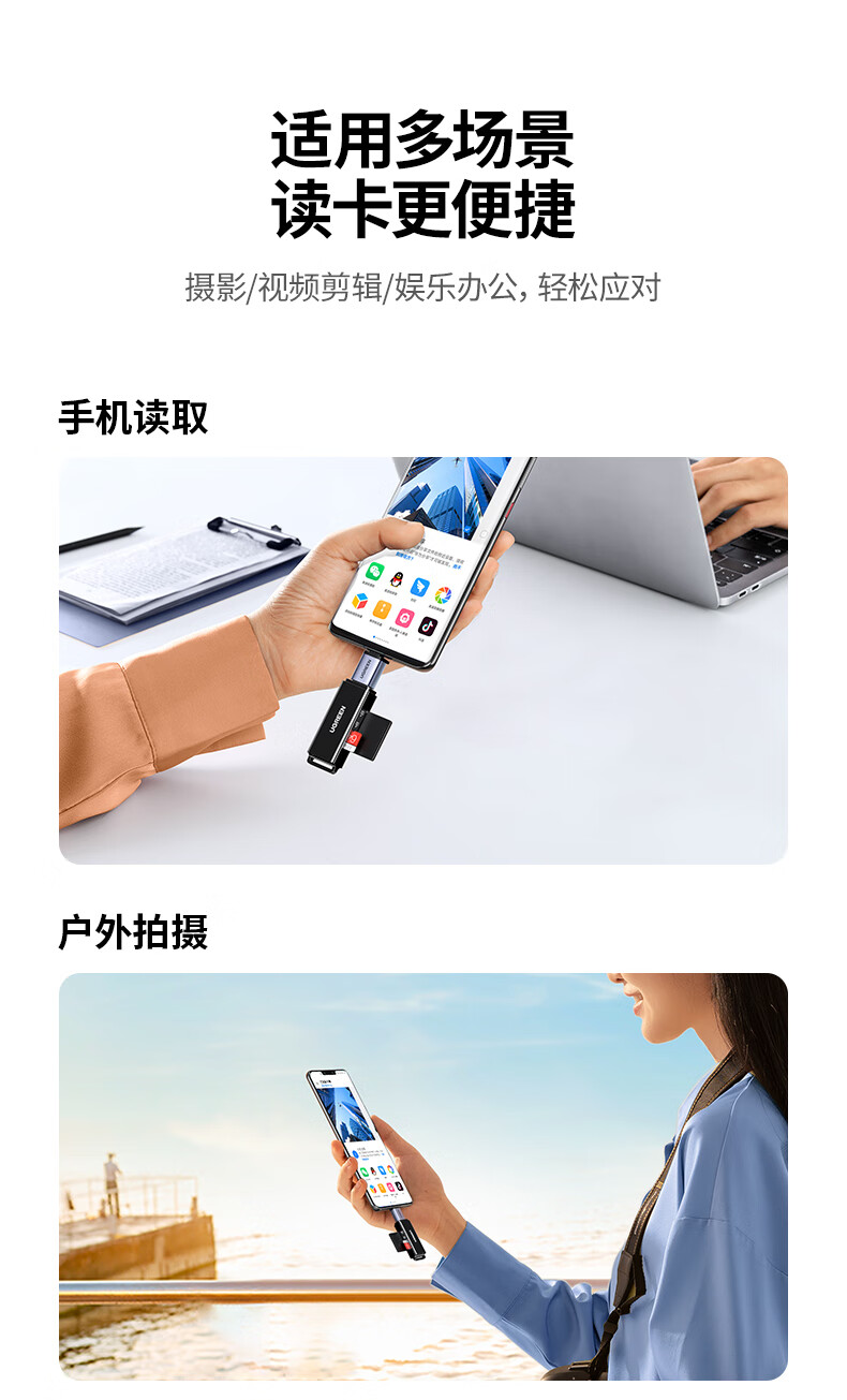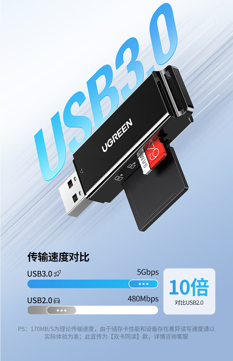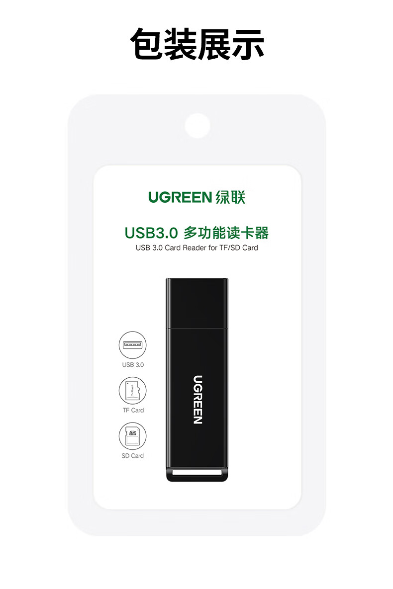 “UGREEN/綠聯(lián)”40752 USB3.0讀卡器 單個裝(高速多功能SD/TF二合一支持電腦單反相機(jī)行車記錄儀安防監(jiān)控存儲內(nèi)存卡多卡多讀)