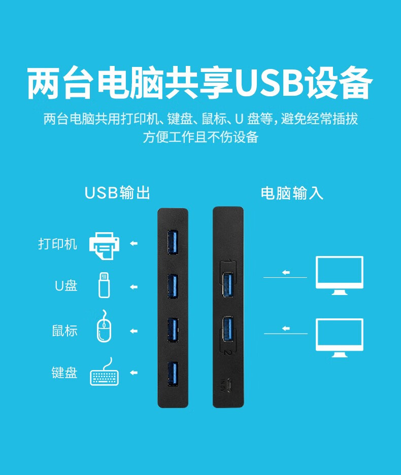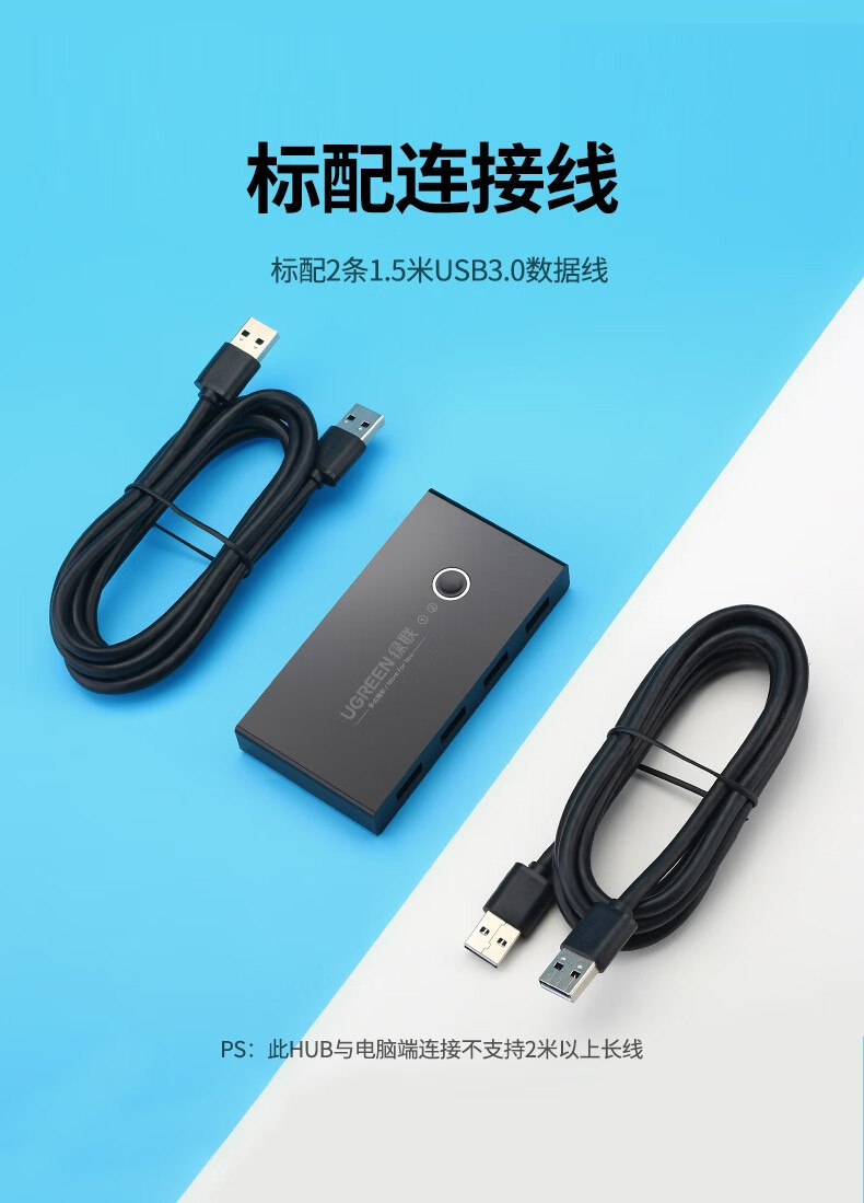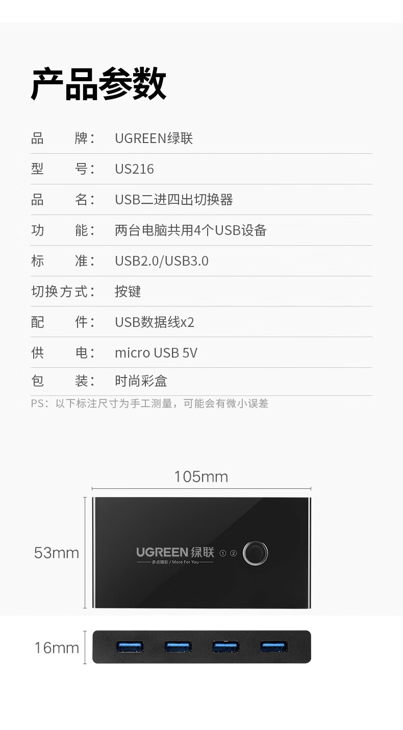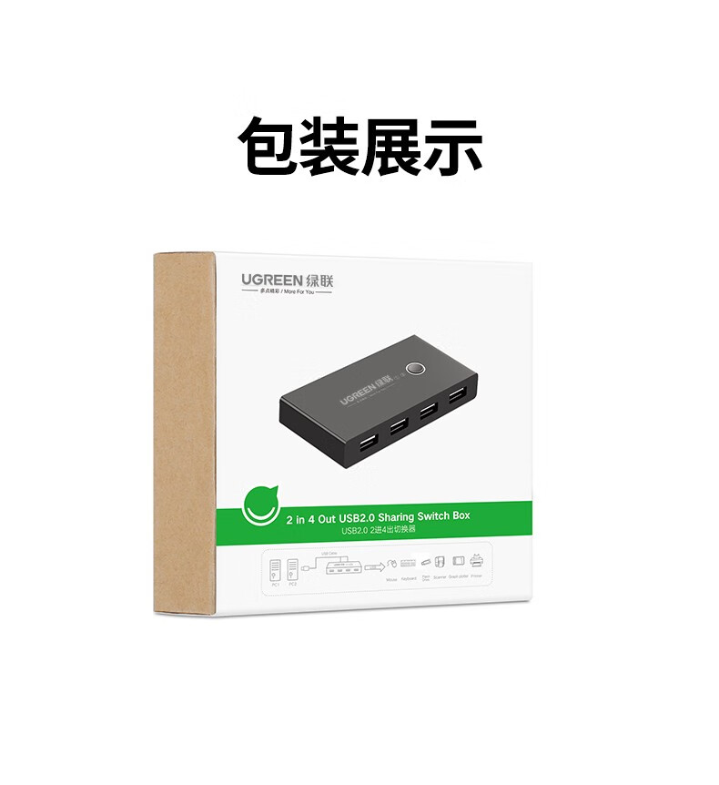 “UGREEN/綠聯(lián)”US216 30768 切換器 單個(gè)裝(二進(jìn)四出切換器2進(jìn)4出臺(tái)式機(jī)連接鼠標(biāo)鍵盤U盤共享4口轉(zhuǎn)換器USB3.0共享器)