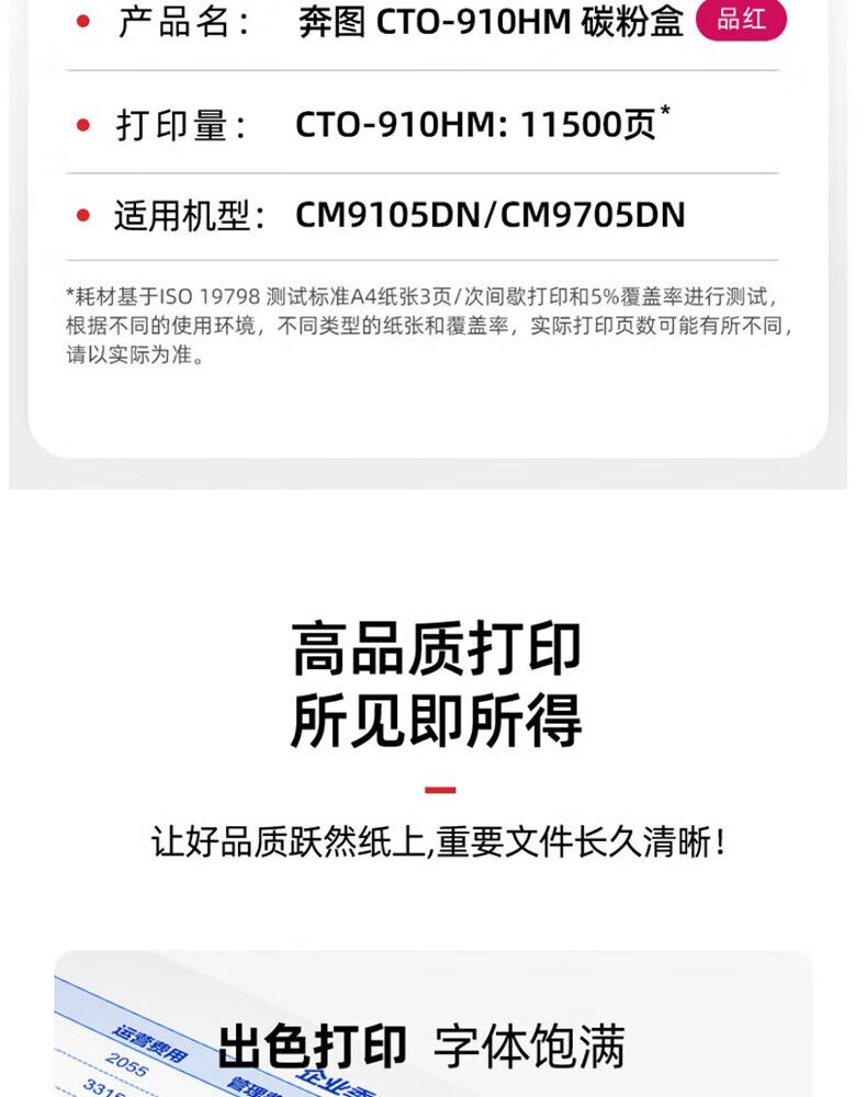 “PANTUM/奔圖”CTO-910HM 粉盒 單個裝(紅色原裝適用于奔圖CM9105DN/ CM9705DN/CM9107DN/CM9707DN打印機硒鼓碳粉盒墨盒)