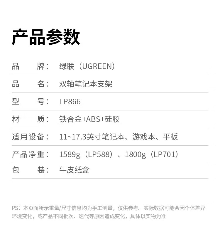 “UGREEN/綠聯(lián)”LP866 45416 筆記本支架 單個(gè)裝(電腦桌支架散熱器立式升降增高電腦架底座適用蘋(píng)果Macbook華為聯(lián)想拯救者戴爾折疊架)