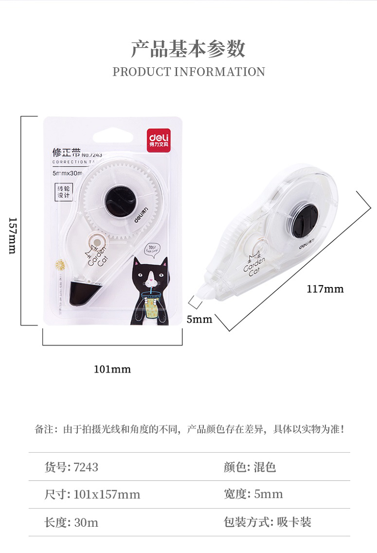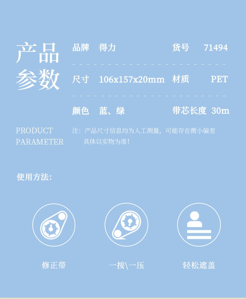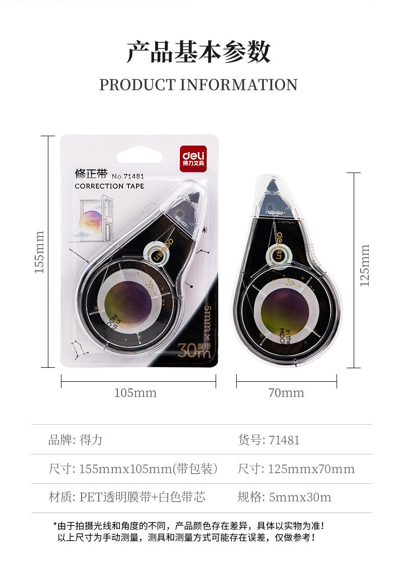 “deli/得力”No.71481 修正帶 1個裝(大容量涂改帶學(xué)生用改正錯帶可愛創(chuàng)意多功能30m)