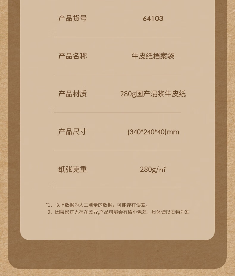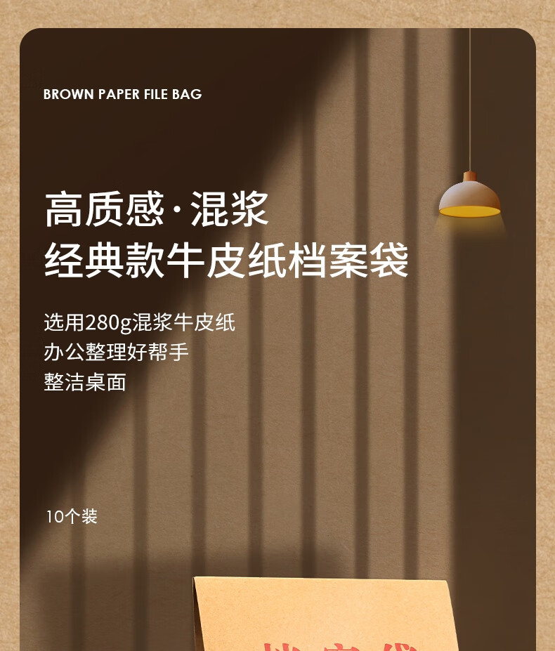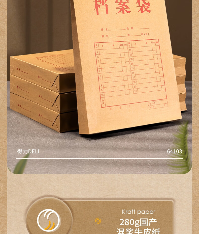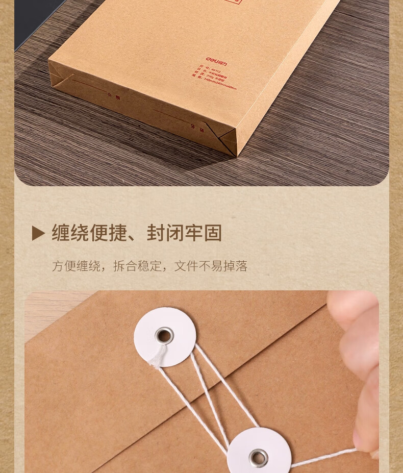 “deli/得力”No.64103 檔案袋 單包裝(280g牛皮紙票據(jù)收納側(cè)寬4cm標(biāo)書合同文件資料袋文件票據(jù)憑證保護(hù)10個(gè)/包)