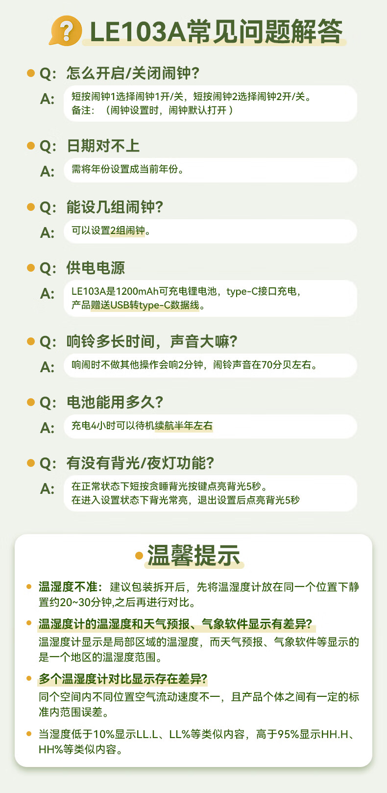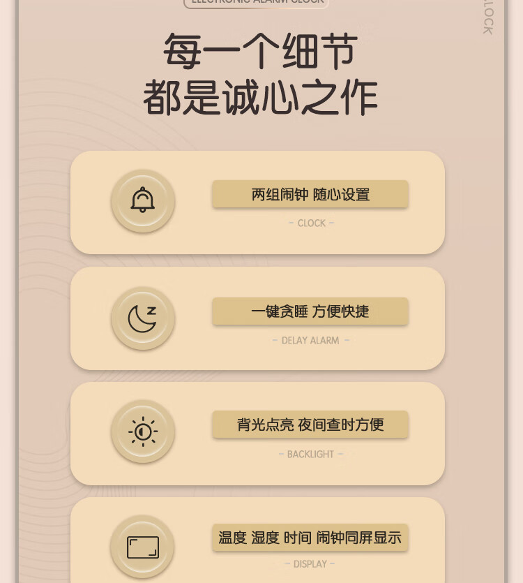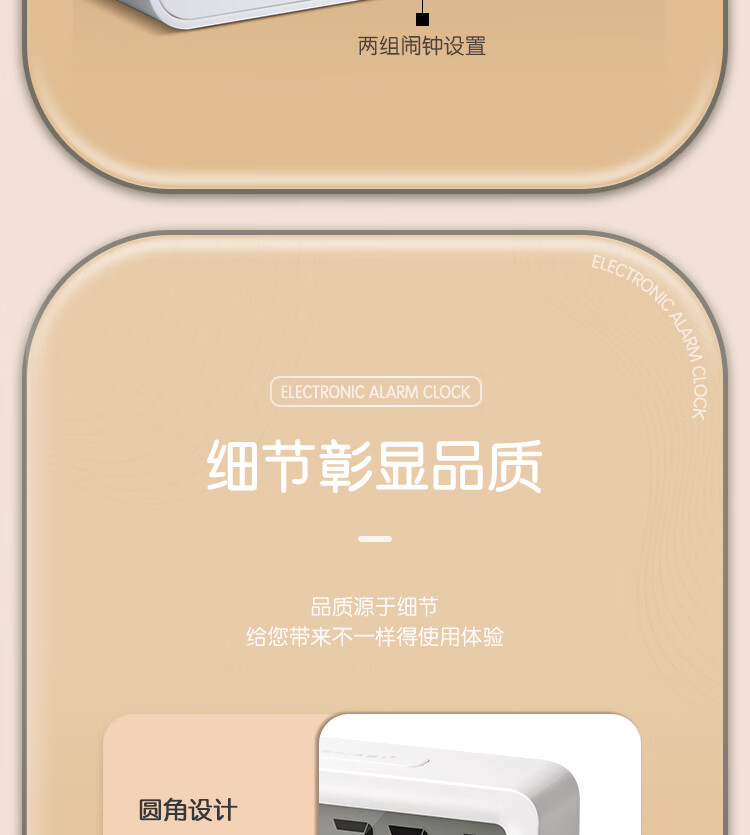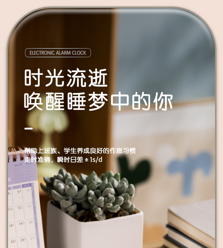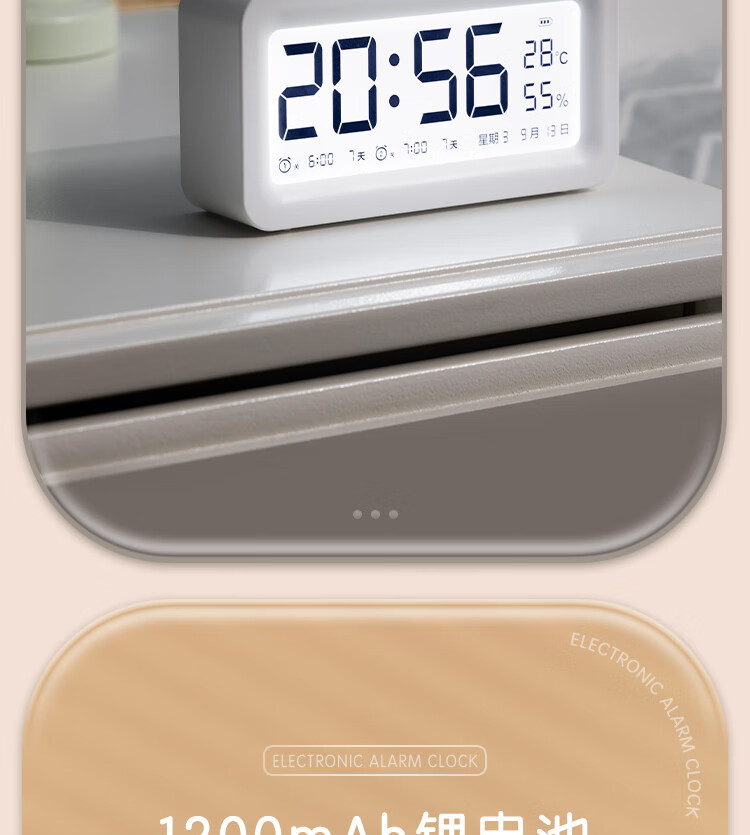 “deli/得力”LE103A 電子鬧鐘 單個裝(白色充電款背光大鬧鈴學生多功能溫濕度計大屏床頭鐘)