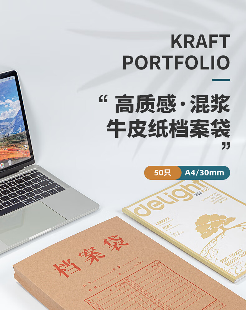 “deli/得力”No.PP411-50 檔案袋 單包裝(1600gA4混漿牛皮紙商品袋側(cè)寬3cm資料袋文件保護(hù)票據(jù)收納50個(gè)/包)