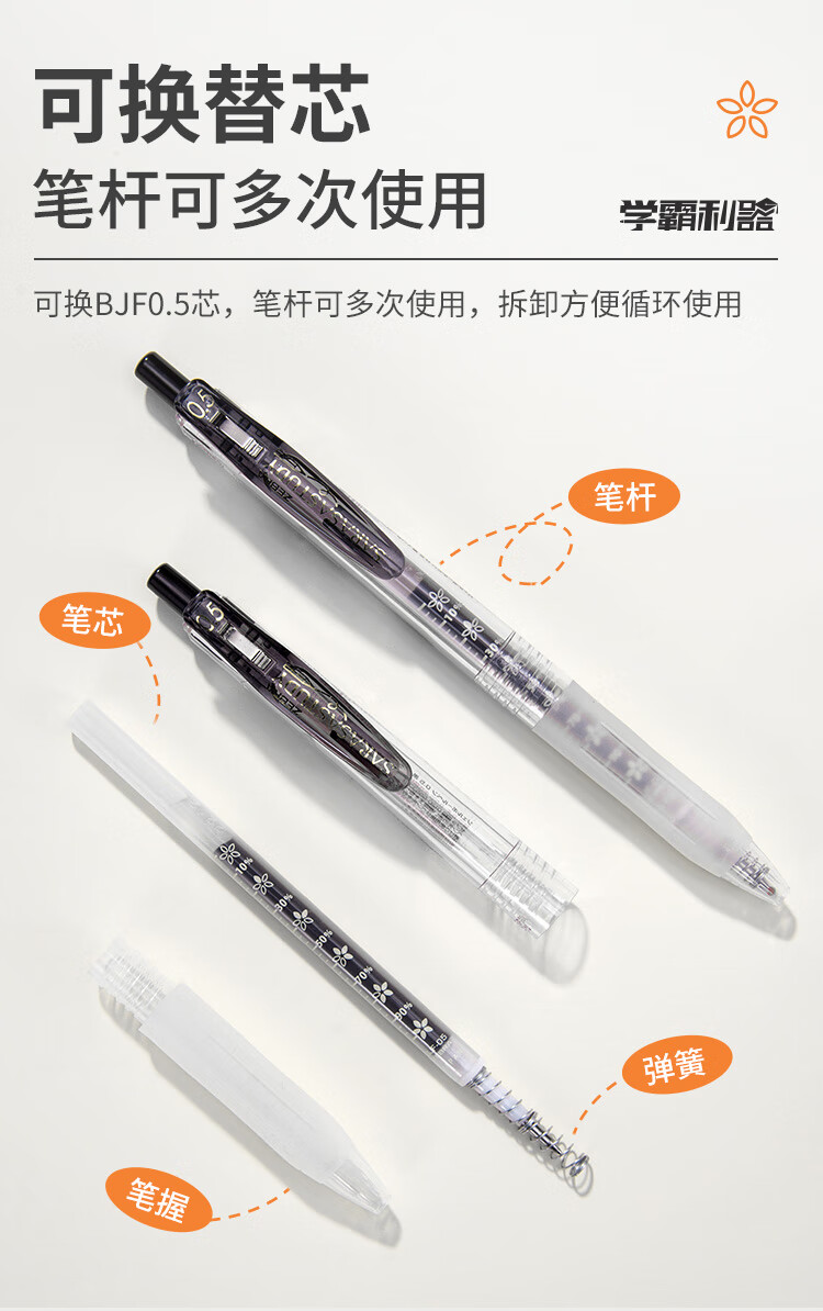“Zebra/斑馬”JJM88 學霸順利筆 單盒裝(黑色十周年紀念版0.5mm花朵刻度學生刷題中性筆10支/盒)