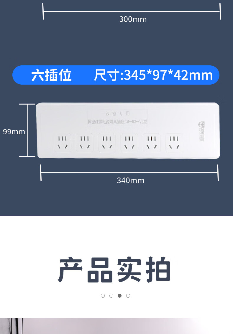 “GMLANDON/國密藍盾”GM-02-IV型 紅黑電源隔離插座 1個裝(紅黑電源濾波隔離插座電源防電磁波信息泄漏插排接線板國家保密認證/四插位五孔-1.6米)