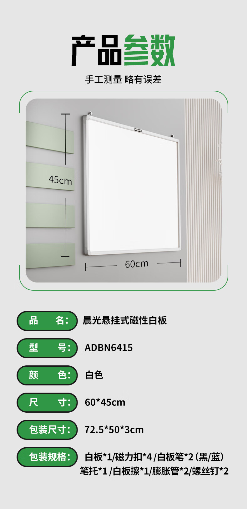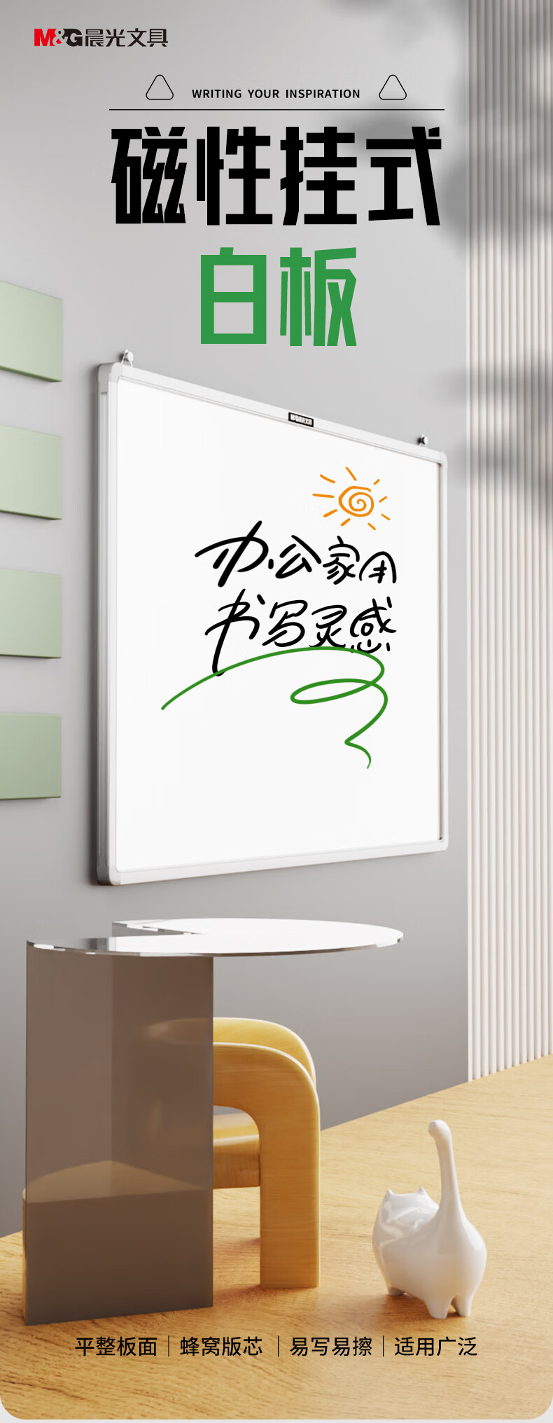 “M&G/晨光”ADBN6415 白板 單個裝(60*45cm掛式蜂窩板芯會議辦公教學(xué)家用懸掛式磁性白板黑板寫字板)