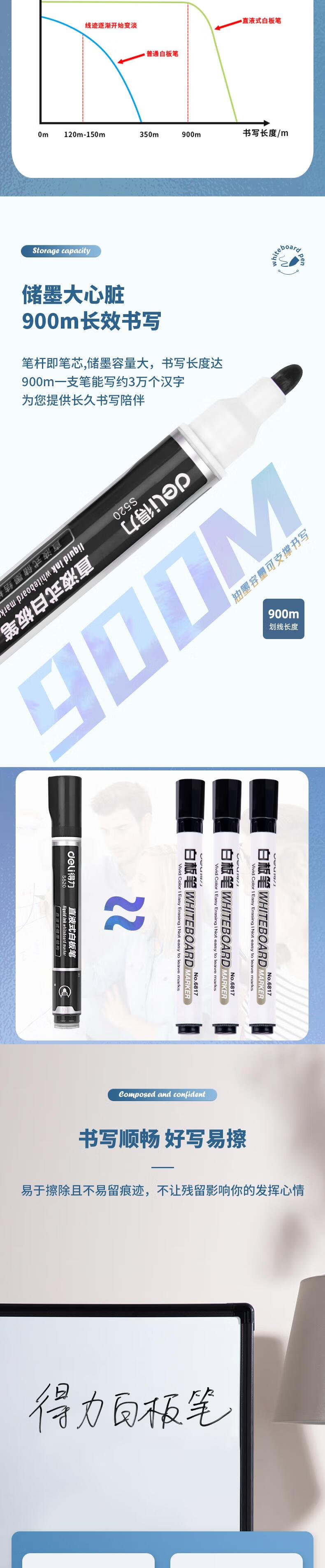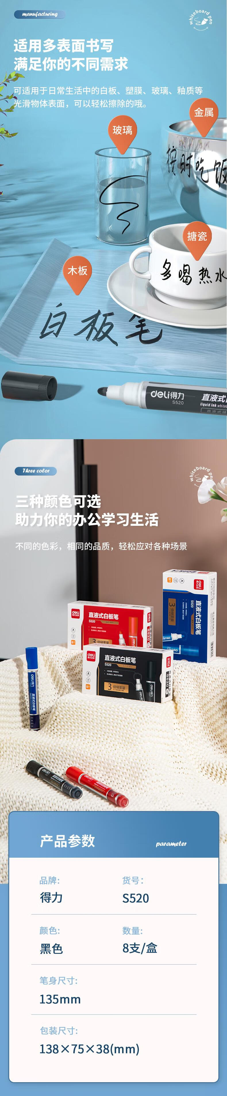 “deli/得力”S520 直液式白板筆 單盒裝(黑色粗頭可擦辦公教學(xué)會(huì)議三倍書寫辦公用品)