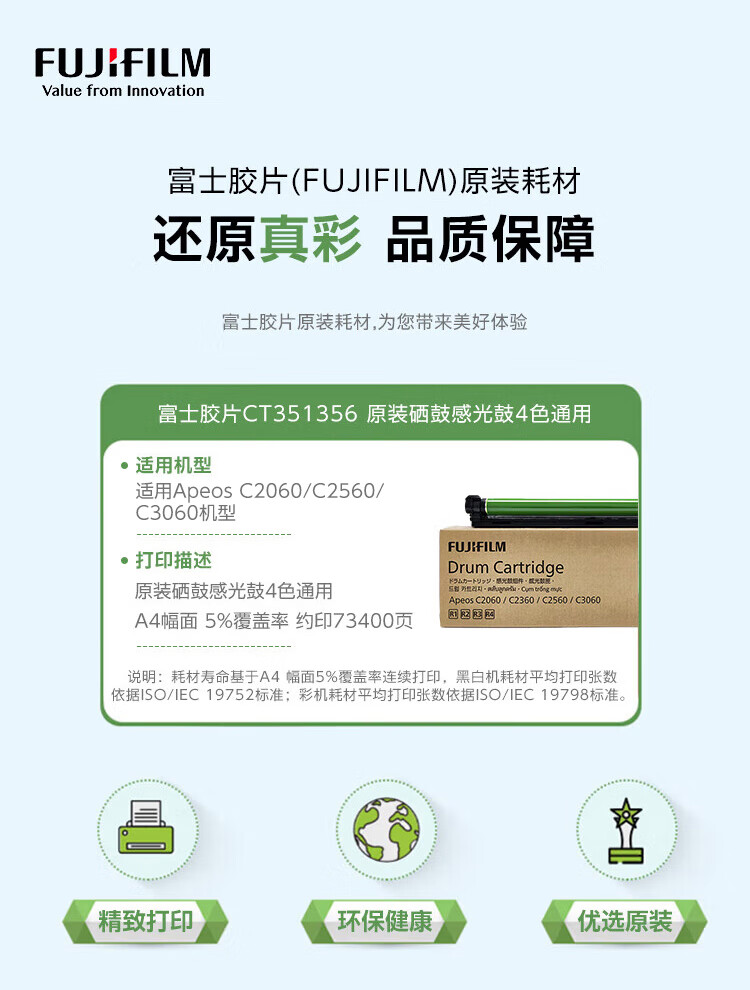“FUJI FILM/富士膠片”CT351356 感光鼓組件 1個(gè)裝(原裝富士施樂(lè)硒鼓感光鼓4色通用適用C2060/C2560/C3060機(jī)型約印73400頁(yè))