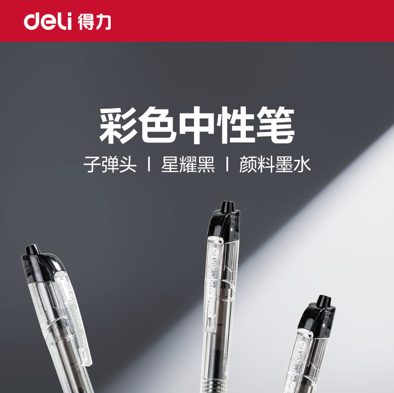 “deli/得力”SA500 中性筆 單支裝(星耀黑.5mm子彈頭彩色按動(dòng)簽字筆12支/盒)