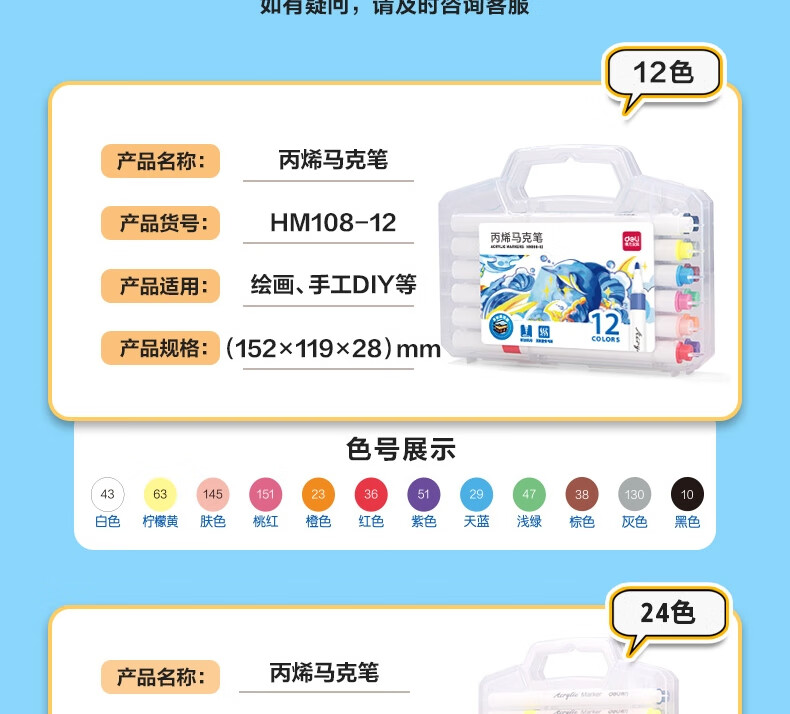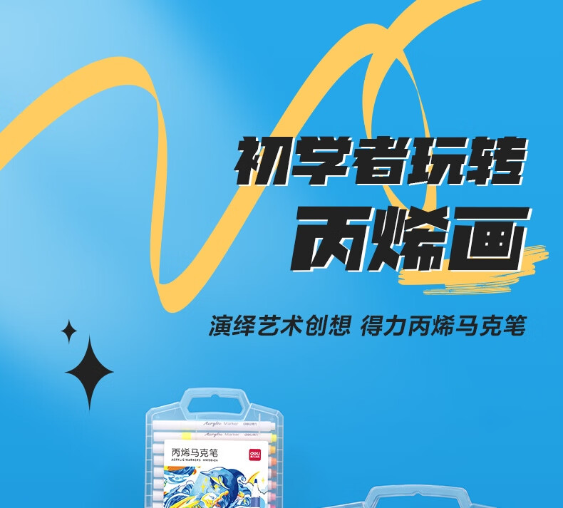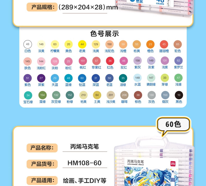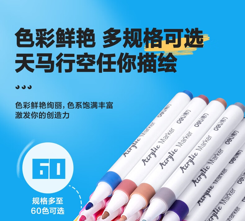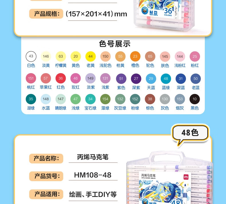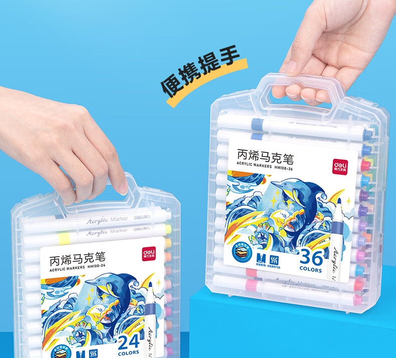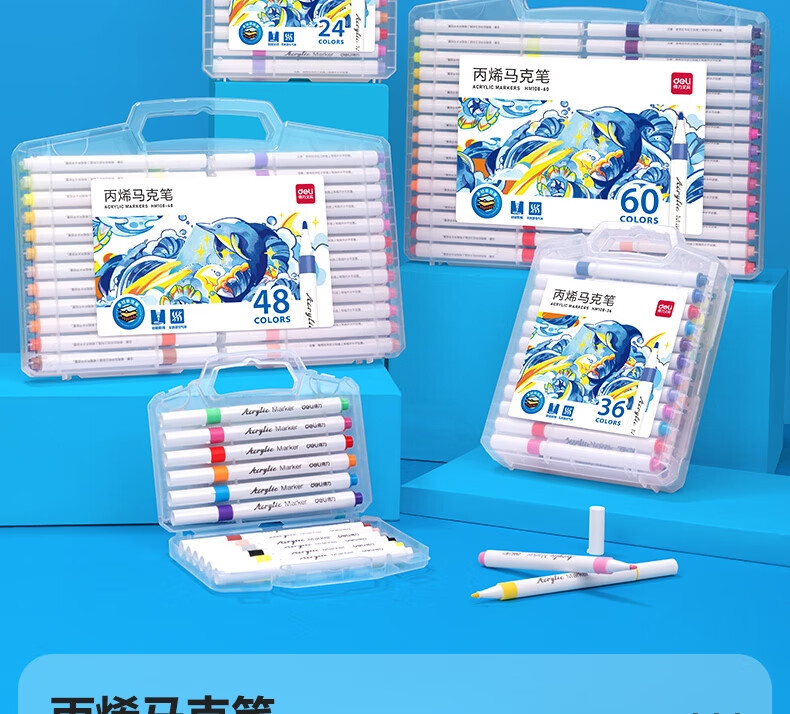 “deli/得力”HM108-36 丙烯馬克筆 1盒裝(36色PP盒裝美術(shù)繪畫彩筆畫筆36支/盒)