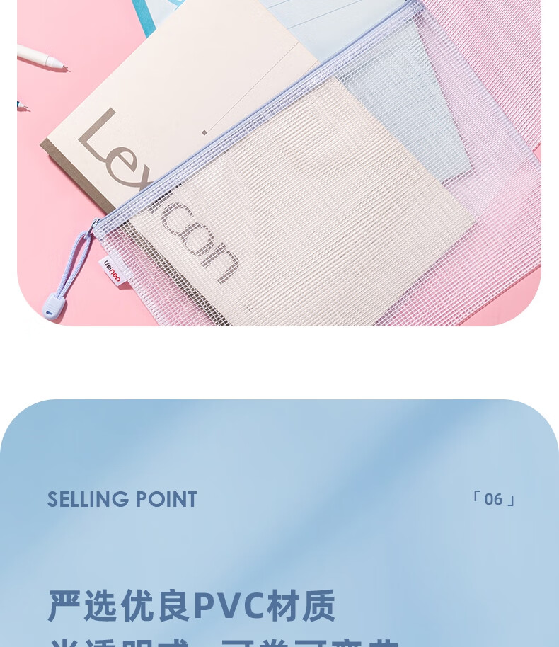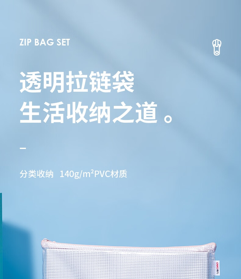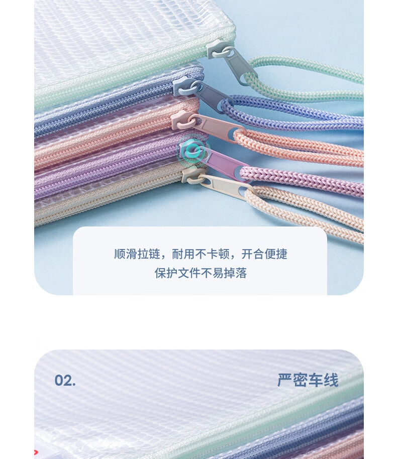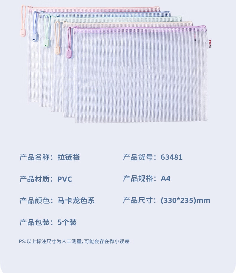 “deli/得力”63481 拉鏈袋 單包裝(混色馬卡龍色系A(chǔ)4網(wǎng)格學(xué)生試卷學(xué)科分類(lèi)收納資料袋5只/包)