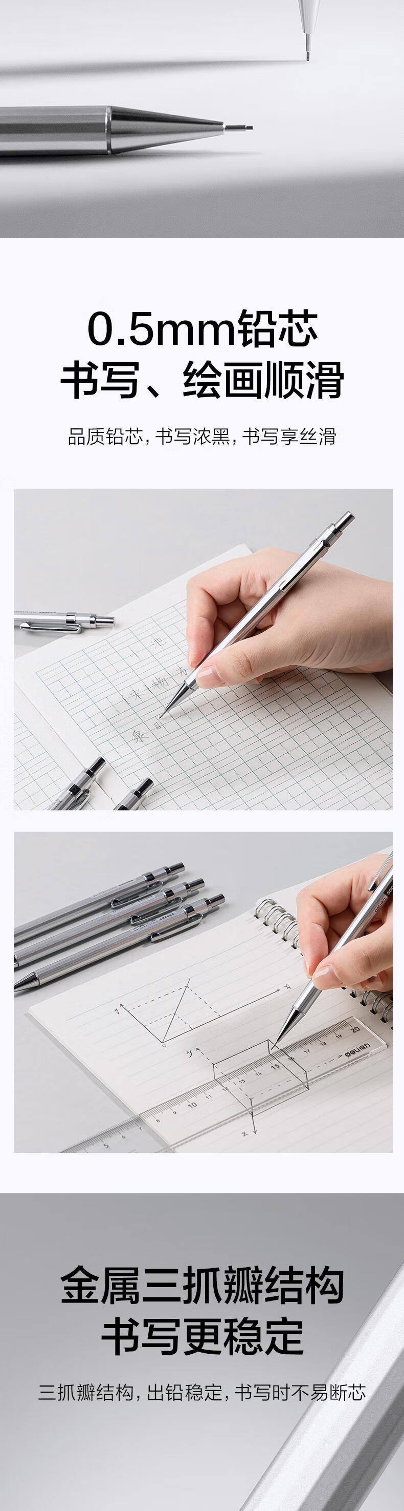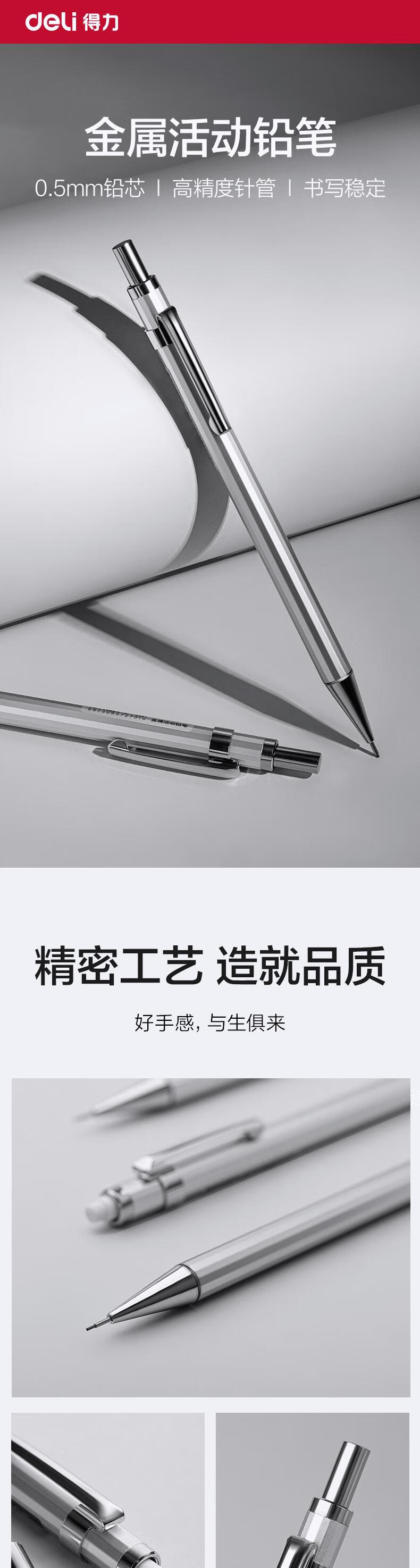 “deli/得力”S001-A 金屬活動鉛筆 單支裝(0.5mm/2B金屬自動鉛筆活動鉛低重心不易斷芯學(xué)生文具考試繪圖辦公標記簽字)