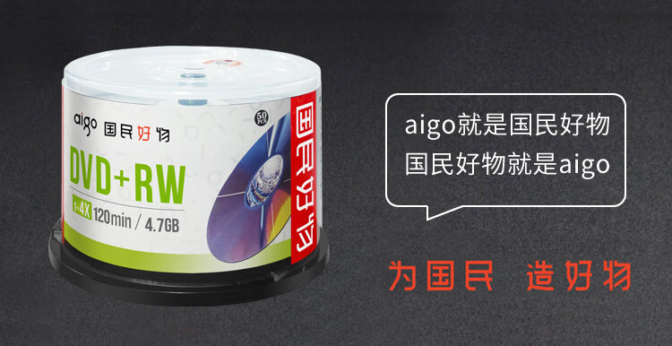 “aigo/愛國者”DVD+RW 空白光盤/刻錄盤 1盒裝(1-4速4.7GB臺(tái)產(chǎn)桶裝50片可擦寫可重復(fù)刻錄)