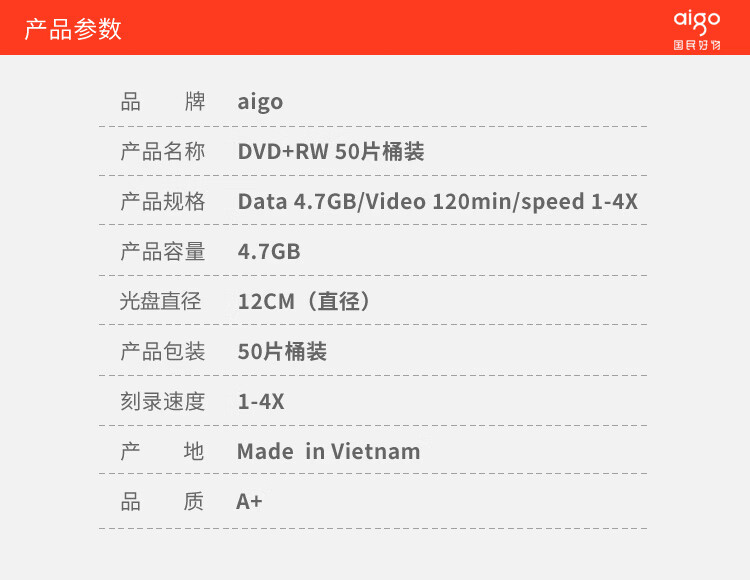 品牌:aigo/愛國者型號:DVD+RW產(chǎn)地:北京市