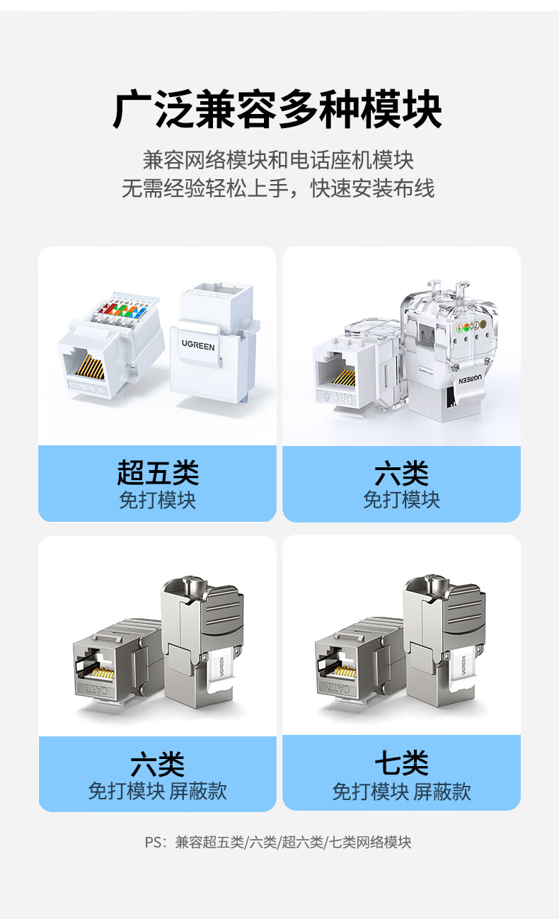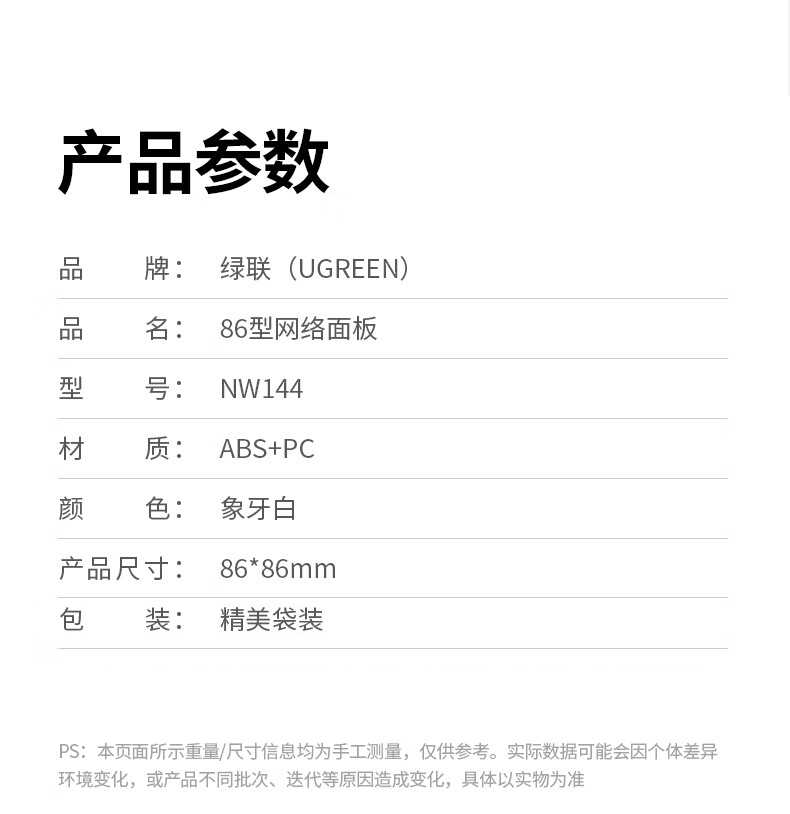 “UGREEN/綠聯(lián)”NW144 80443 網(wǎng)絡(luò)面板 單個(gè)裝(網(wǎng)線網(wǎng)口通用超五/六/七類模塊加厚86型面板適用電話電腦房間網(wǎng)絡(luò)插座四口)