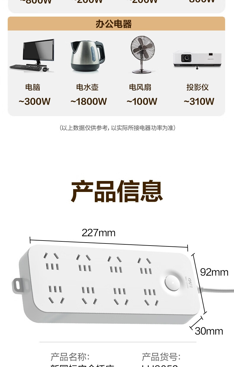 “deli/得力”LU9052(1.8) 插座 單個(gè)裝(新國標(biāo)安全插線板/插排/排插/插板/接線板/拖線板延長(zhǎng)線總控開關(guān)8位1.8米)