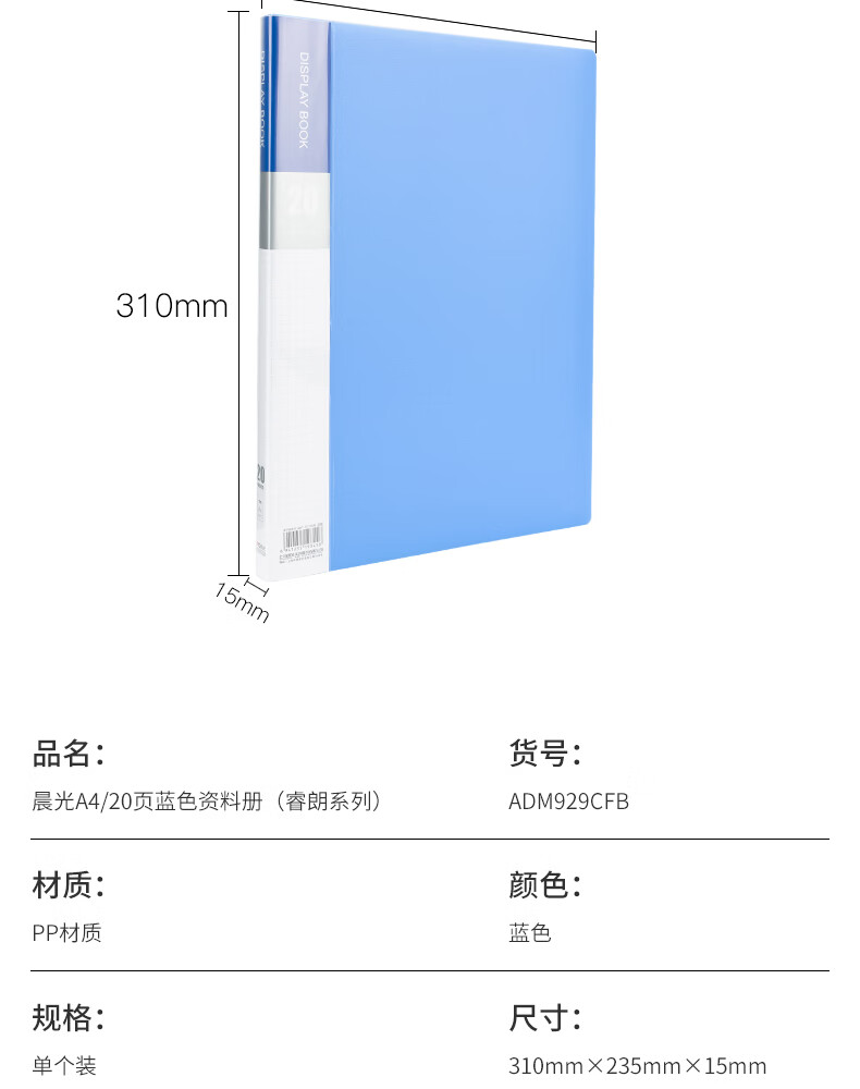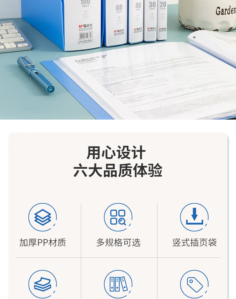 “M&G/晨光”ADM929CFB 資料冊 1個裝(文具A4/20頁文件夾文件冊插頁袋票據(jù)收納)