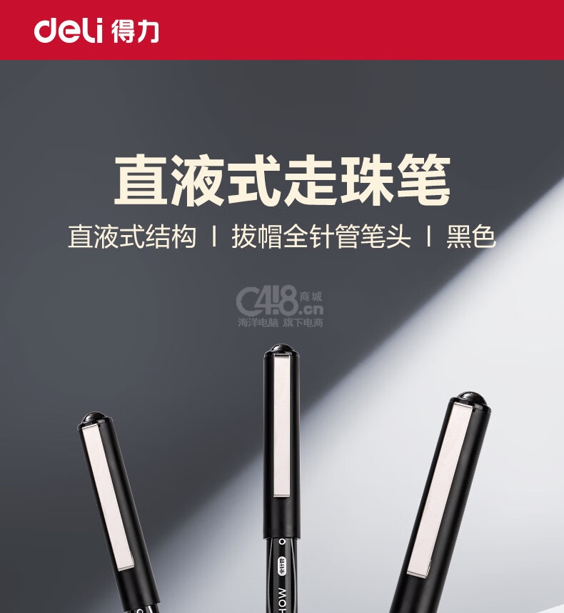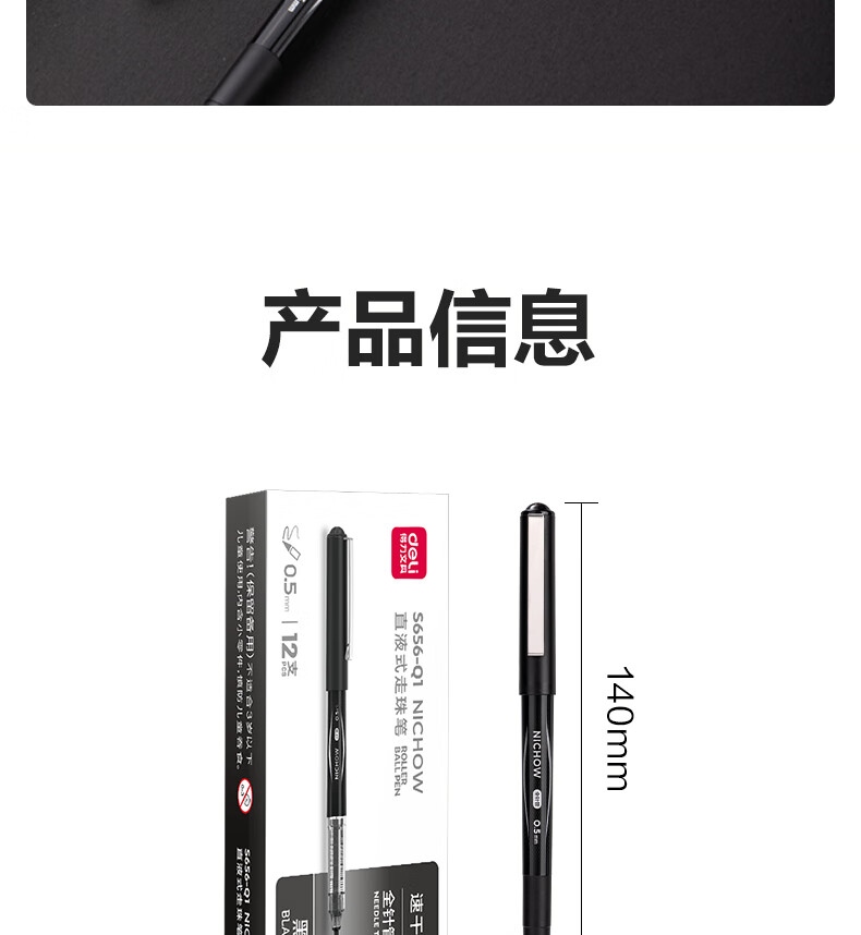 “deli/得力”S656-Q1 直液式走珠筆 1盒裝(黑色中性筆0.5mm全針管12支/盒)