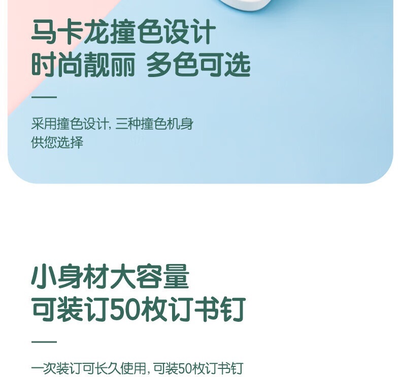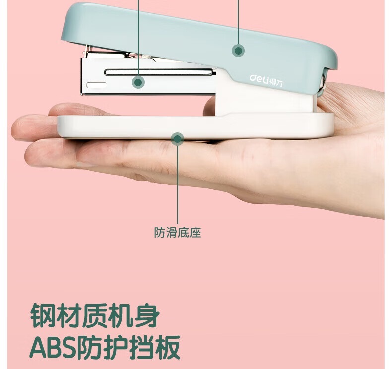 “deli/得力”TA301-A 訂書機(jī) 1個(gè)裝(淺藍(lán)色學(xué)生辦公訂書器馬卡龍色適配24/6或26/6訂書釘)