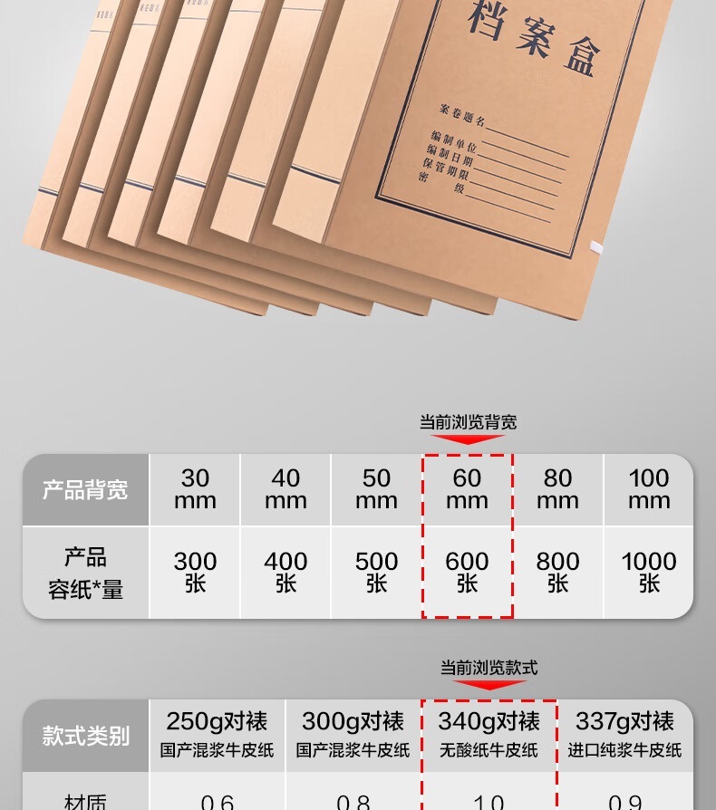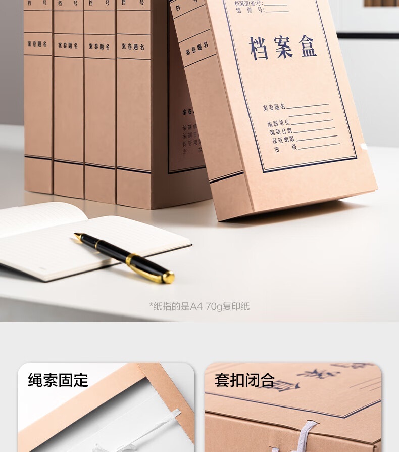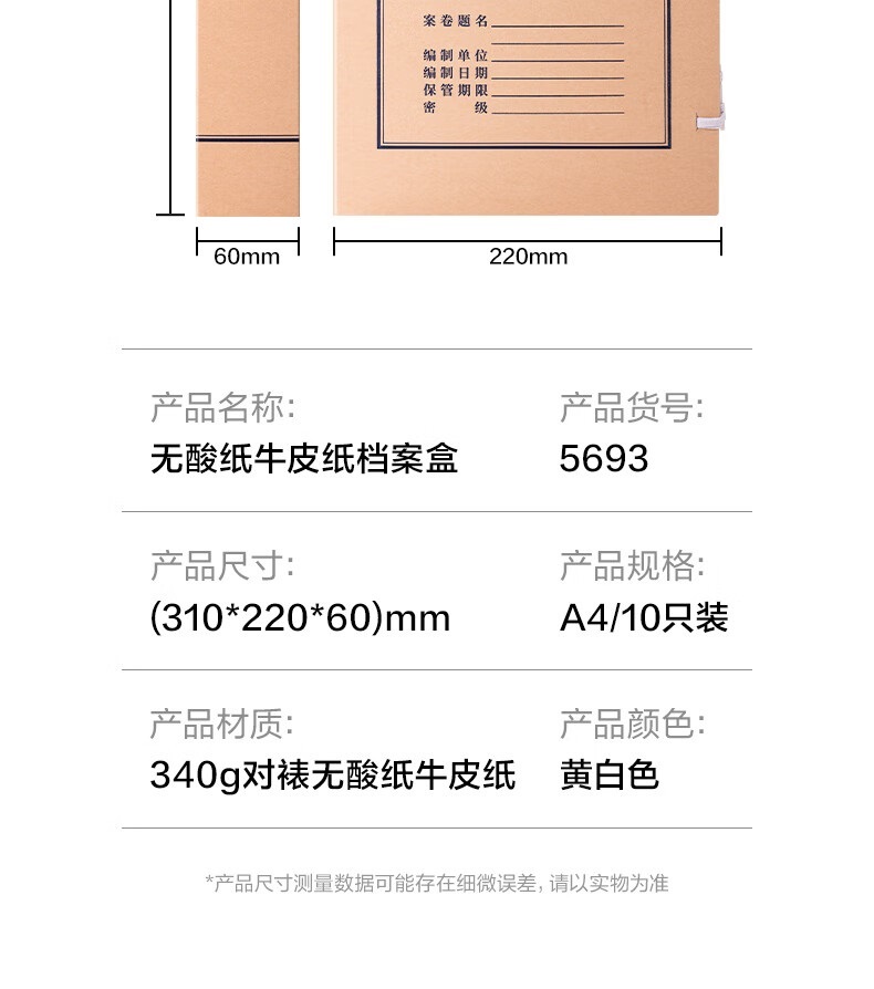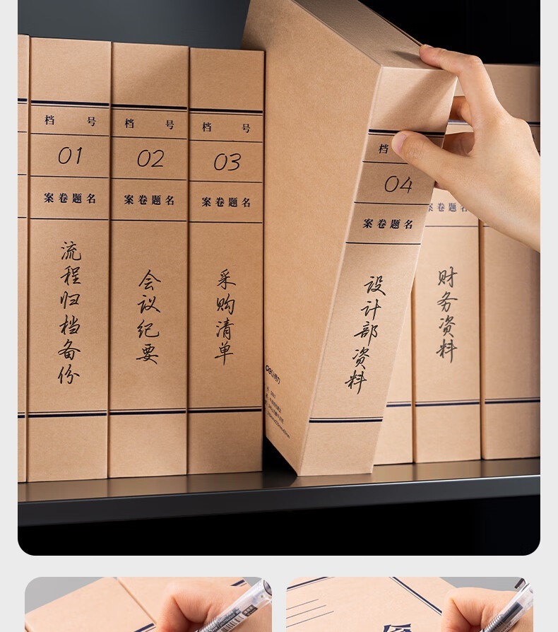 “deli/得力”5693 檔案盒 1組裝(10只60mmA4無酸牛皮紙文件盒加厚塑料財會檔案盒考試收納)