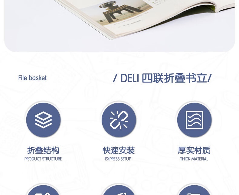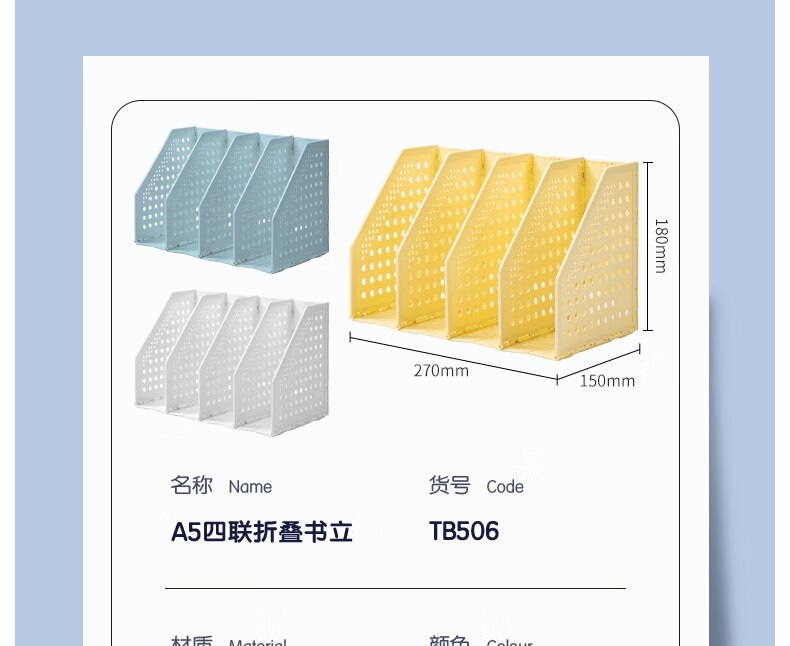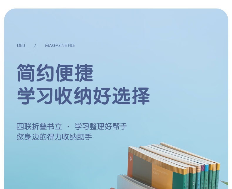“deli/得力”TB506 A5四聯(lián)折疊書立 單個裝(白色置物架桌上收納書架書籍擋靠書籍資料收納神器)
