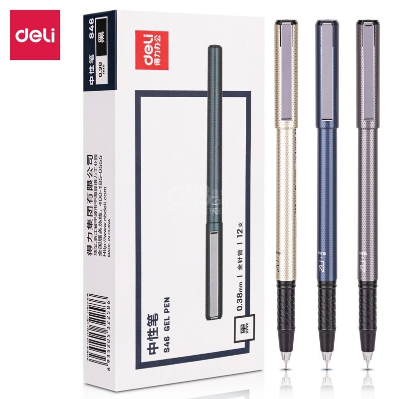 “deli/得力”S46 中性筆 1支裝(黑色0.38mm全針管碳素筆細(xì)水筆財(cái)務(wù)簽字筆新老包裝隨機(jī)發(fā)貨12支/盒)