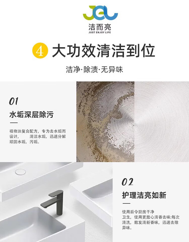 “潔而亮(潔而亮)”JEL-015 去污乳 單瓶裝(檸檬香型700g油污清洗劑廚房油污清潔衛(wèi)浴瓷磚地板不銹鋼清洗乳)