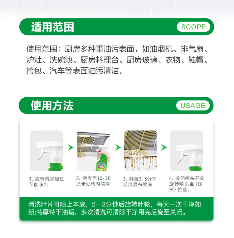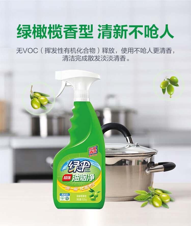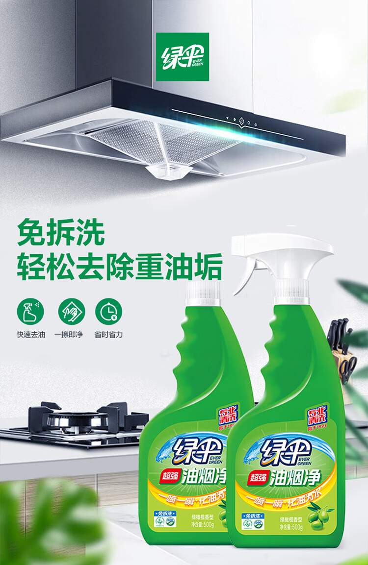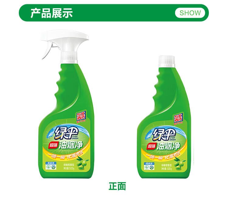 “EVER GREEN/綠傘”綠橄欖香型 500g×2瓶 油煙凈 1箱裝(超強(qiáng)去油污油煙機(jī)清洗油污凈)