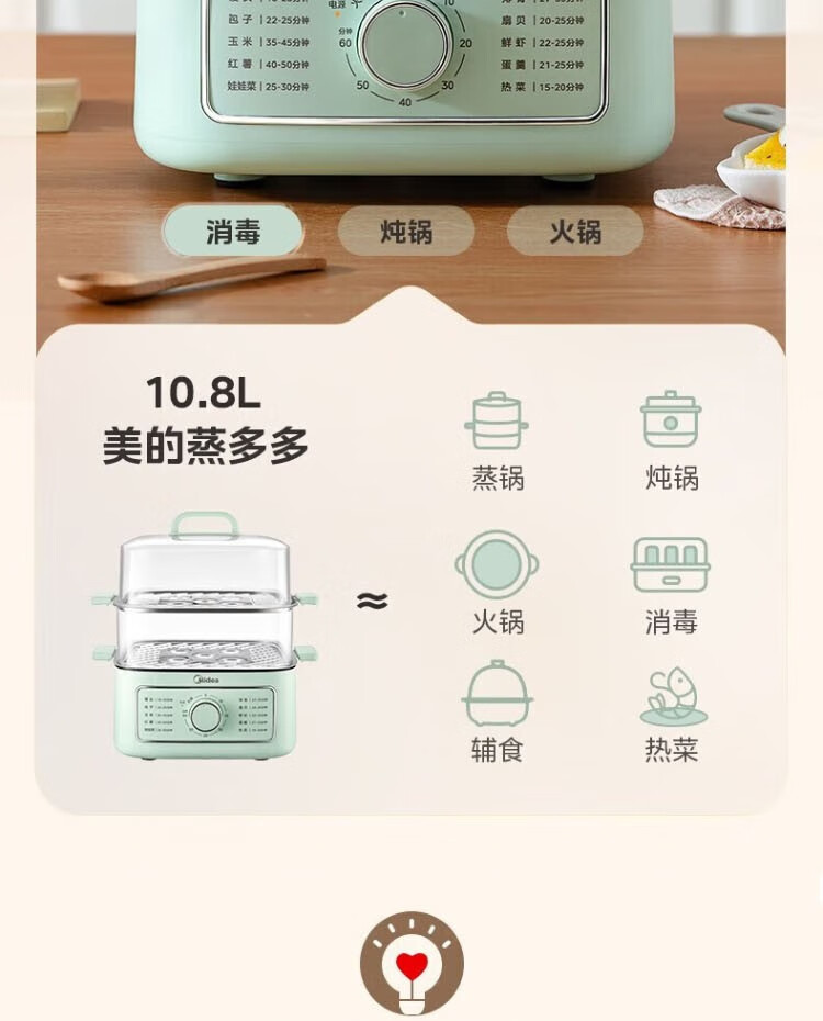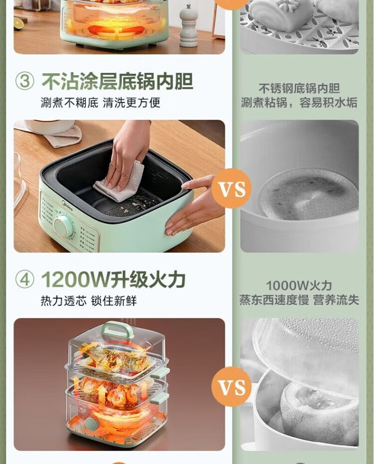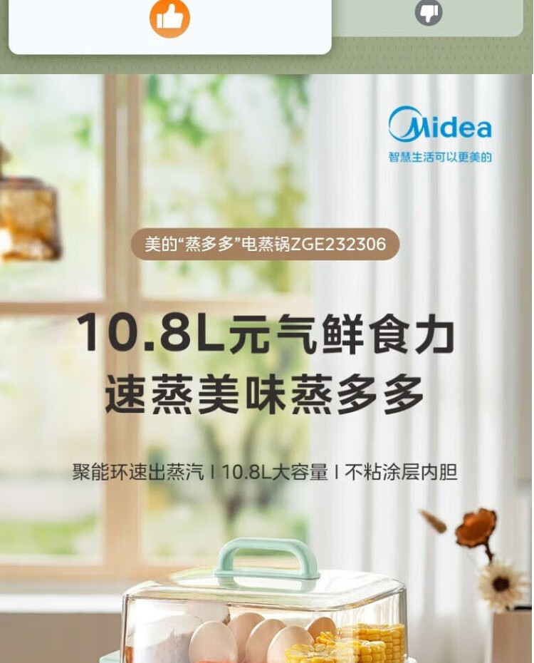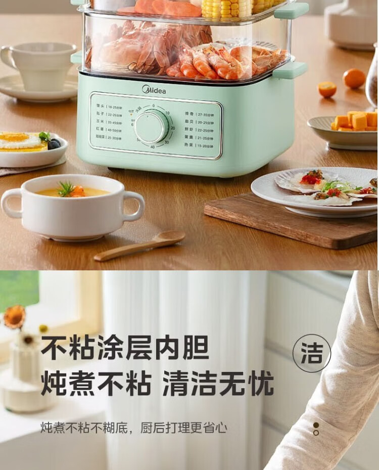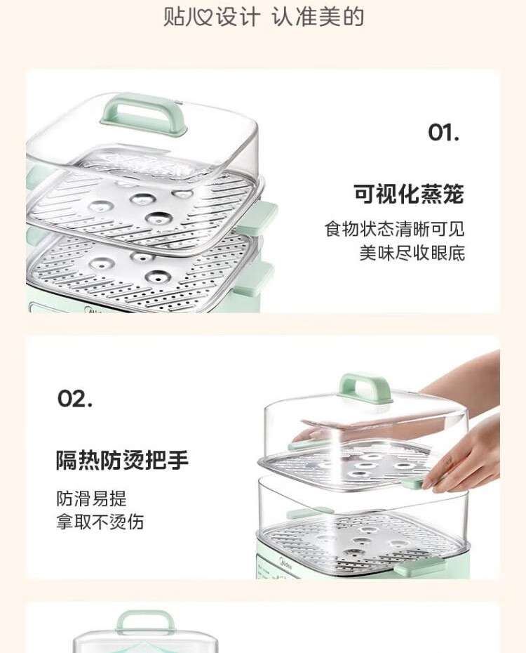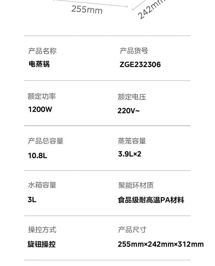 “Midea/美的”ZGE232306 電蒸鍋 單臺(tái)裝(雙層三層多功能大容量全自動(dòng)蒸鍋智能蒸菜神器蒸籠大容量10.8L)
