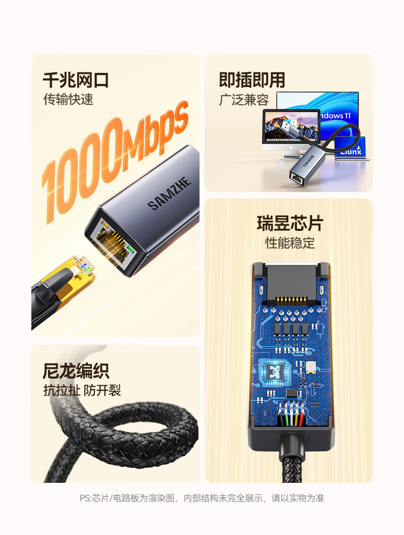 “SAMZHE/山澤”ARX01 USB3.0轉(zhuǎn)千兆網(wǎng)口轉(zhuǎn)換器USB轉(zhuǎn)RJ45 單個裝(USB3.0轉(zhuǎn)網(wǎng)口千兆有線網(wǎng)卡轉(zhuǎn)RJ45網(wǎng)線轉(zhuǎn)接頭接口轉(zhuǎn)換器適用蘋果Mac華為小米筆記本電腦外置擴展塢)