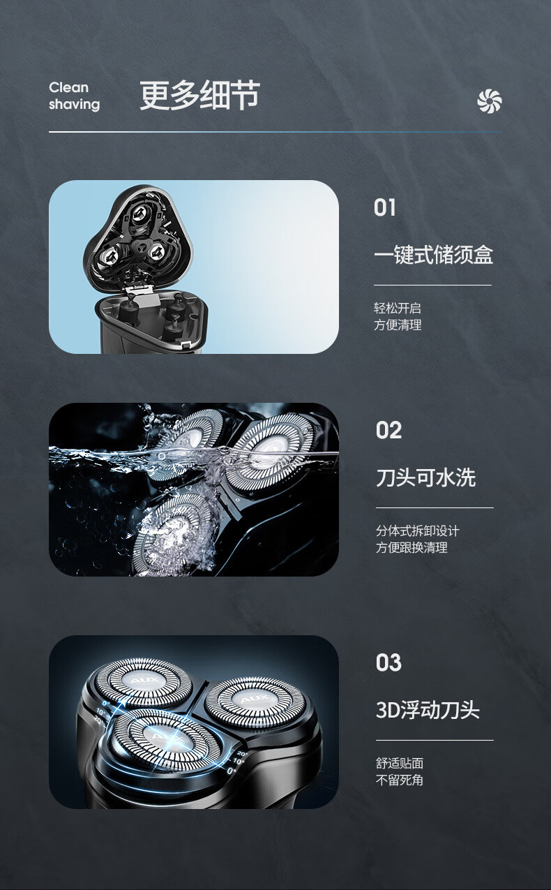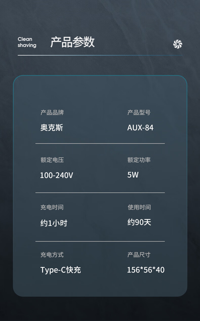 “AUX/奧克斯”AUX-84 剃須刀 1個(gè)裝(電動(dòng)充電式男士刮胡刀須刀頭水洗智能刮胡子刀)