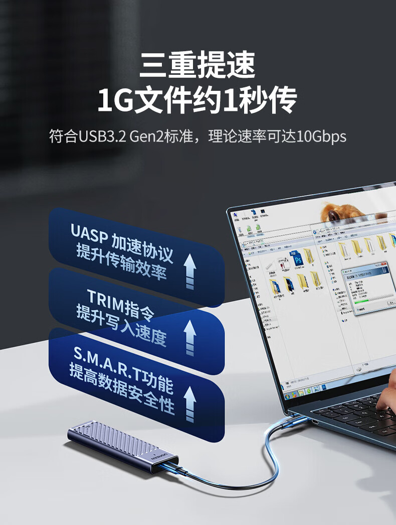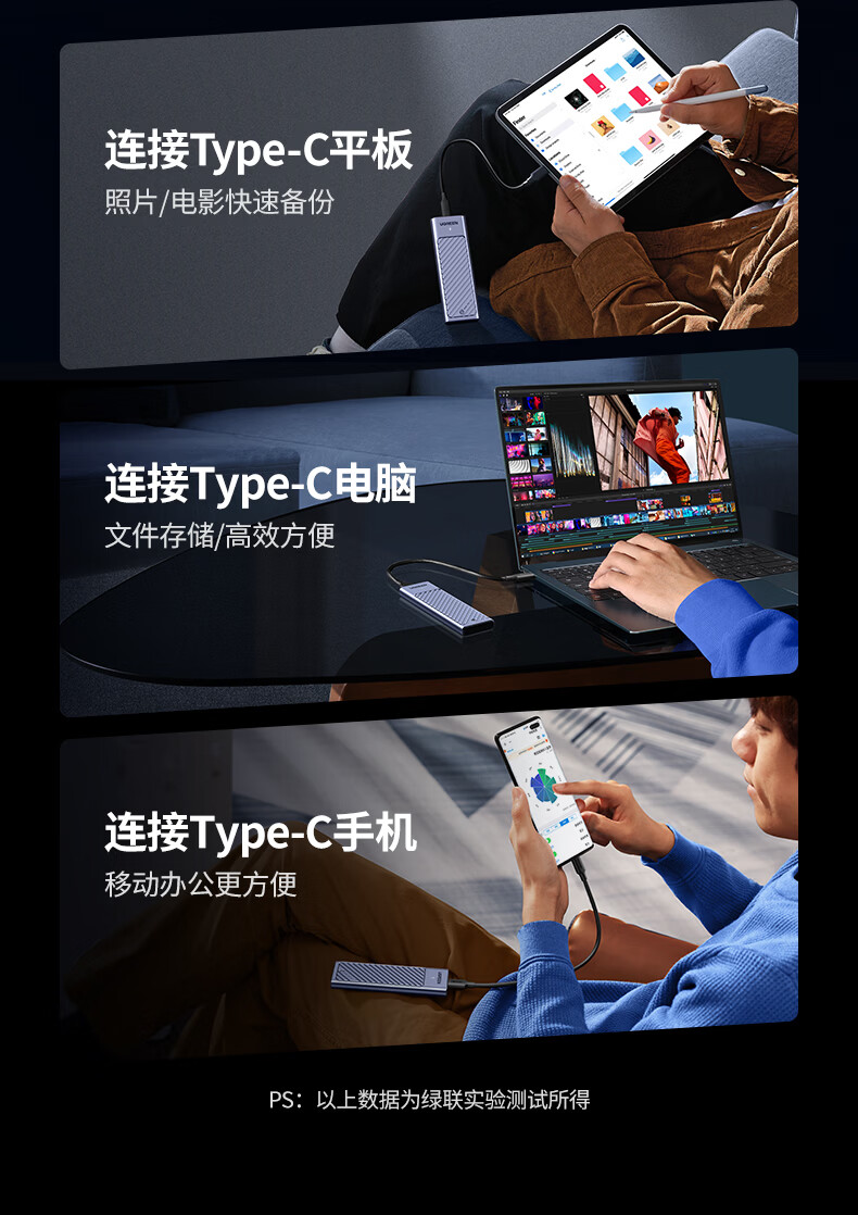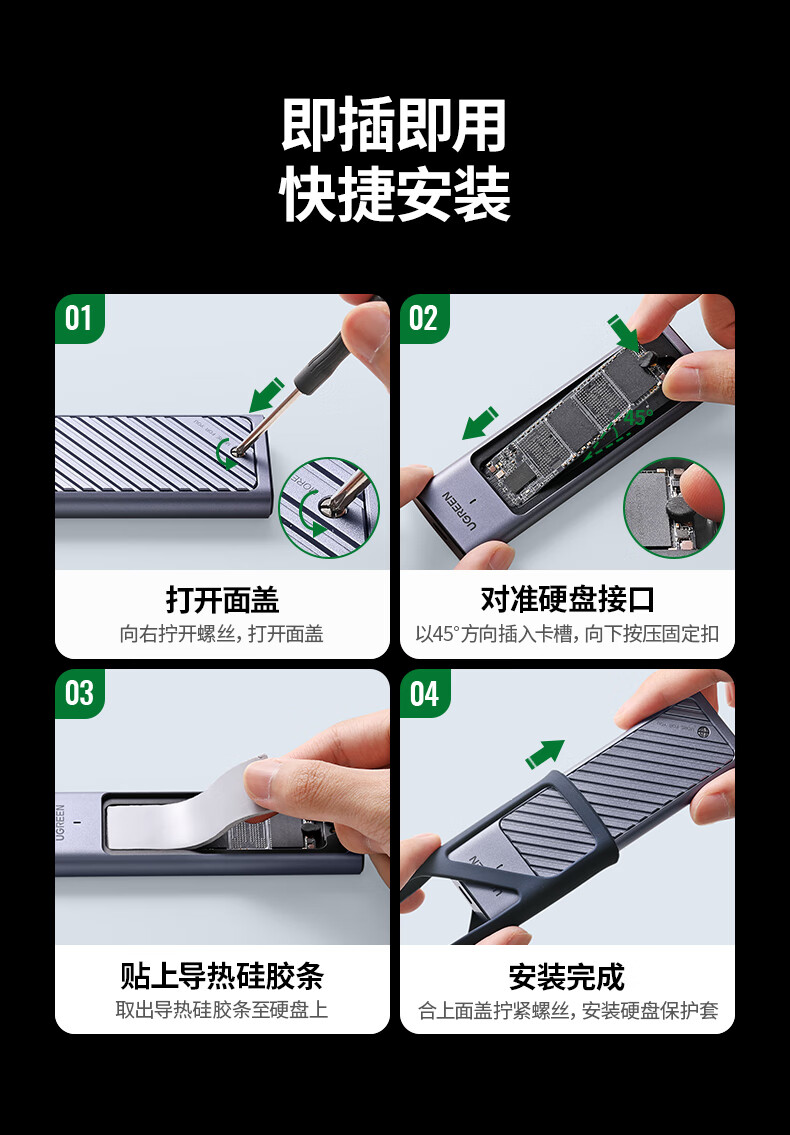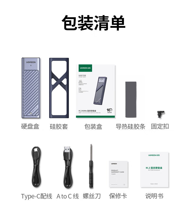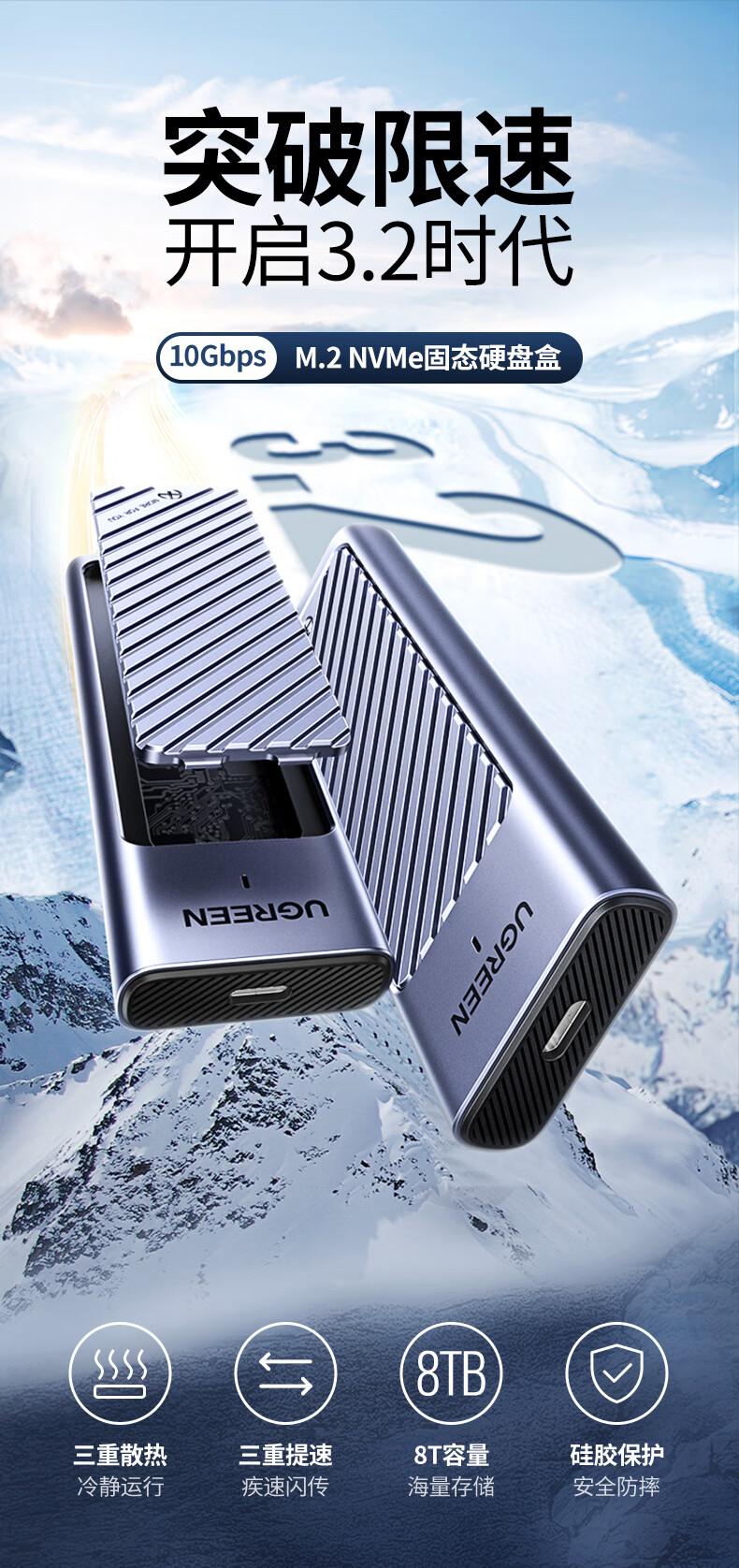 “UGREEN/綠聯(lián)”CM559 35050 移動硬盤盒 1個裝(M.2 NVMe移動硬盤盒Type-C3.2接口固態(tài)外置盒+10Gbps高速A to C數(shù)據(jù)線0.25米)