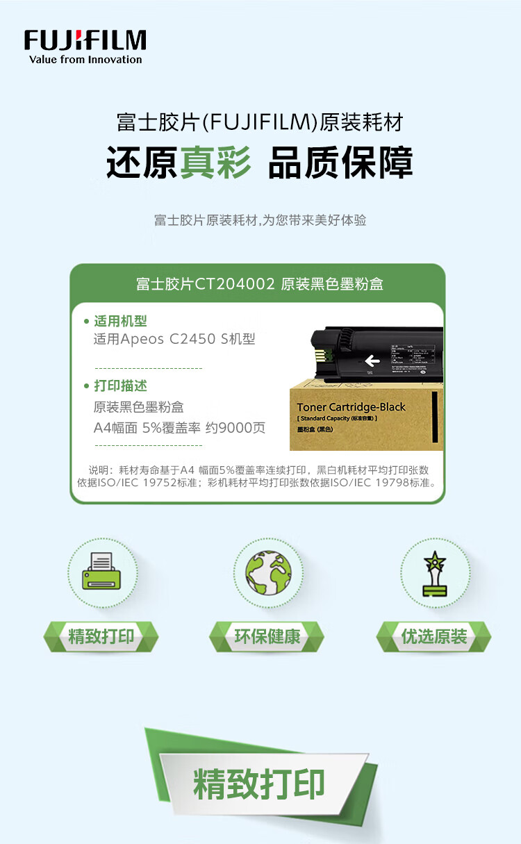 “FUJI FILM/富士膠片”CT204002 墨粉盒 1個裝(黑色原富士施樂標容量墨盒墨粉盒適用Apeos C2450 S機器約印9000頁)