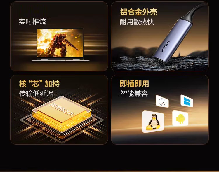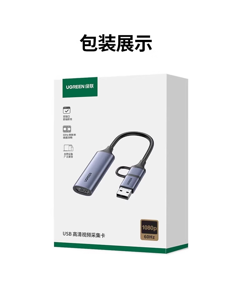 “UGREEN/綠聯(lián)”CM716 25854 USB高清視頻采集卡 1個(gè)裝(深空灰HDMI轉(zhuǎn)USB視頻采集卡4K輸入U(xiǎn)SB/Type-C雙輸出錄制盒usb/type-c1080P60Hz)