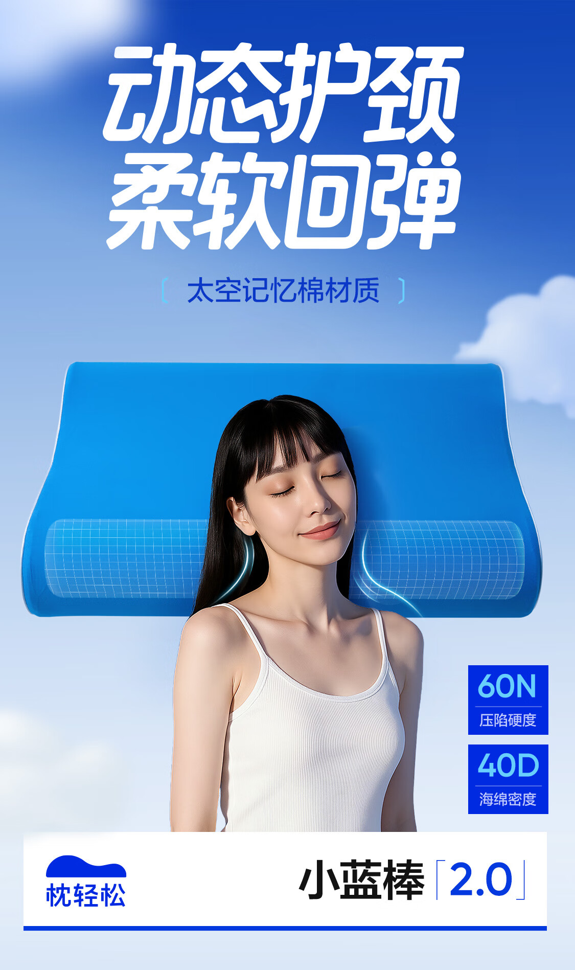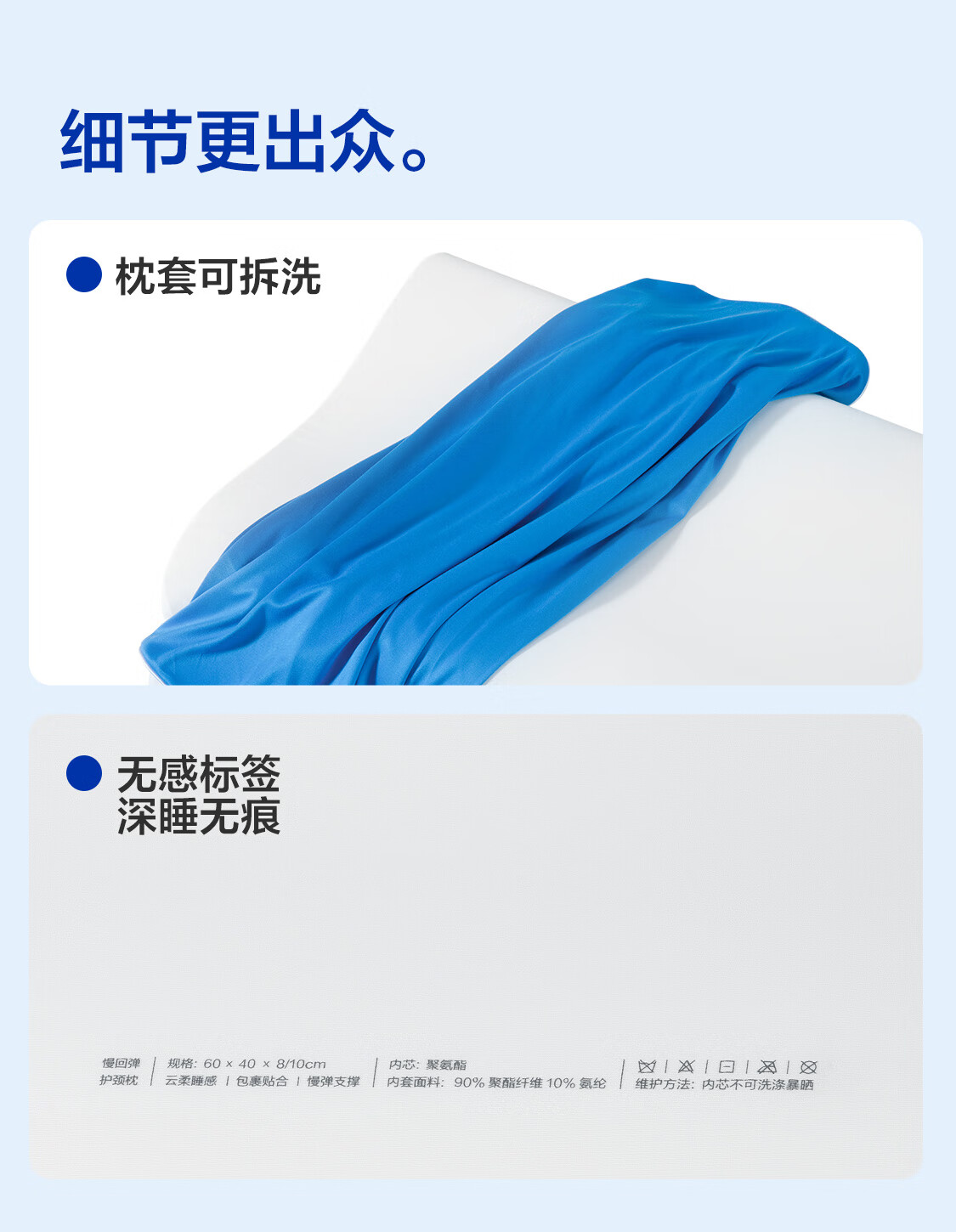 “網(wǎng)易嚴選”B03 記憶棉枕 單個裝(小藍棒深睡枕成人護頸助睡眠枕頭8/10cm)