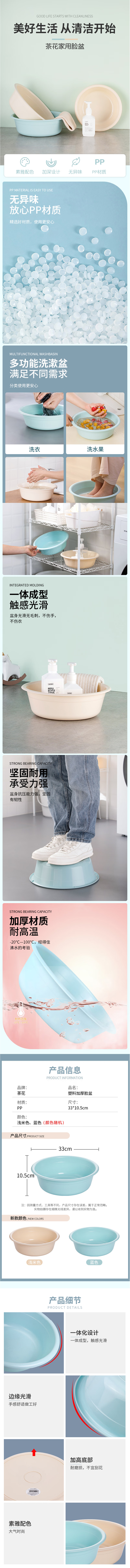 “CHAHUA/茶花”0404 臉盆 1個(gè)裝(淺綠色塑料大號(hào)加厚洗衣盆36CM家用清潔盆)