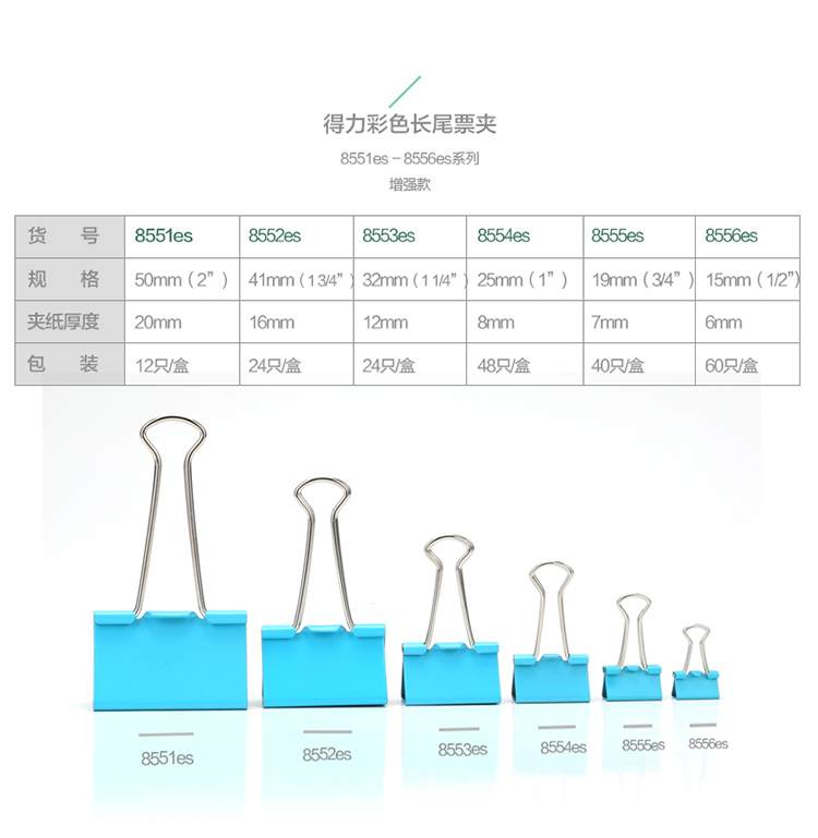 “deli/得力”No.8551ES 彩色長尾票夾 1筒裝(混色50mm 1#金屬燕尾夾票據(jù)夾子12只/筒)