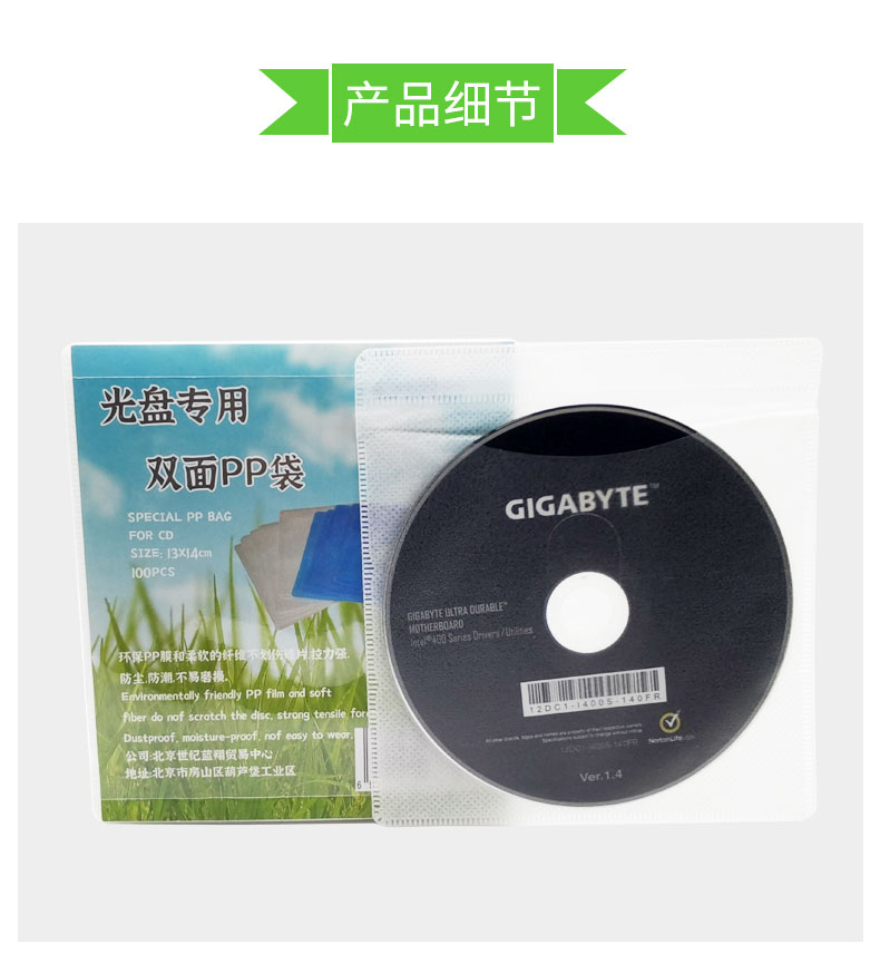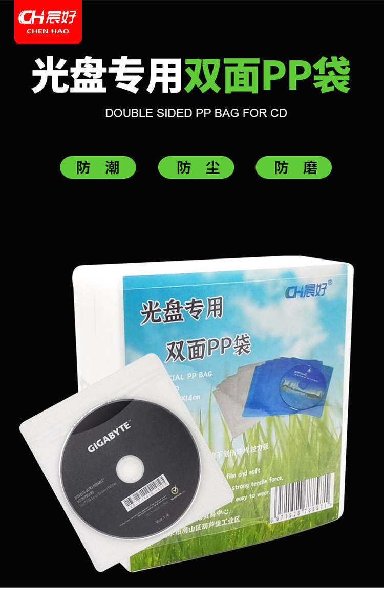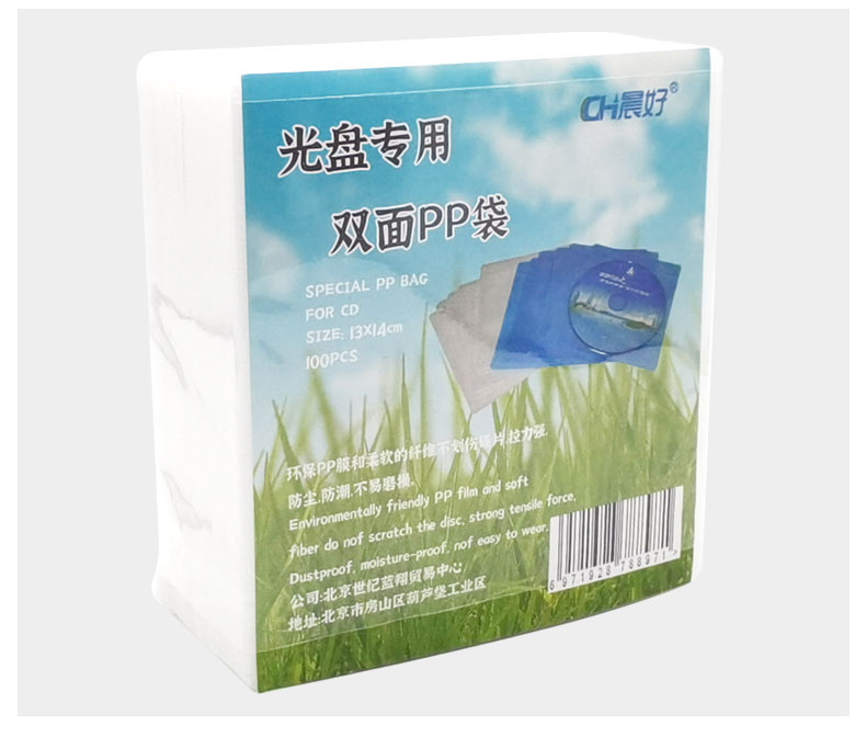 “ch(chenhao)/晨好”13*14cm 光盤專用雙面PP袋 1包裝(透明cd dvd光碟包套刻錄盤收納保護(hù)袋子100張/包)