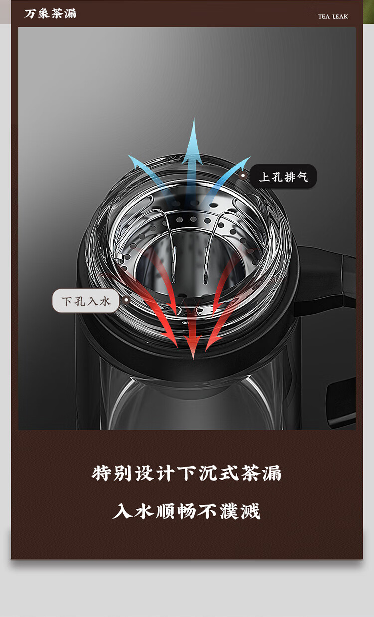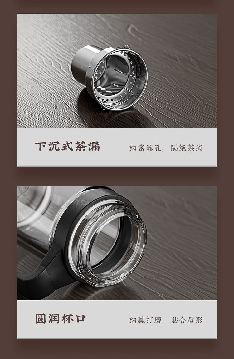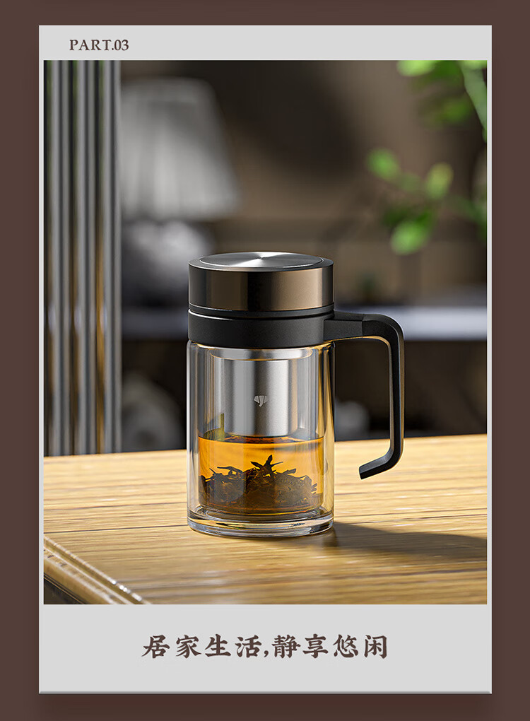 “WANXIANG/萬象”V219 玻璃杯 單個(gè)裝(手柄辦公杯雙層泡茶杯360ML商務(wù)辦公帶濾網(wǎng)水杯)