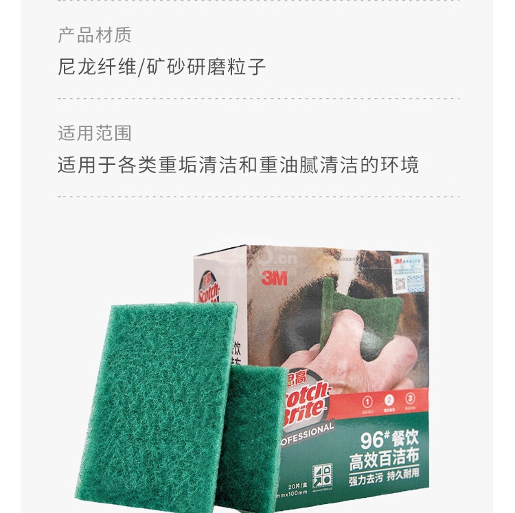 “3M”96#餐飲 高效百潔布 1組裝(思高高效96號(hào)洗碗布廚房工業(yè)清潔布去污繡金屬鍋底不繡鋼5片/組20片/盒)