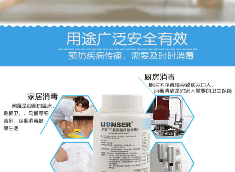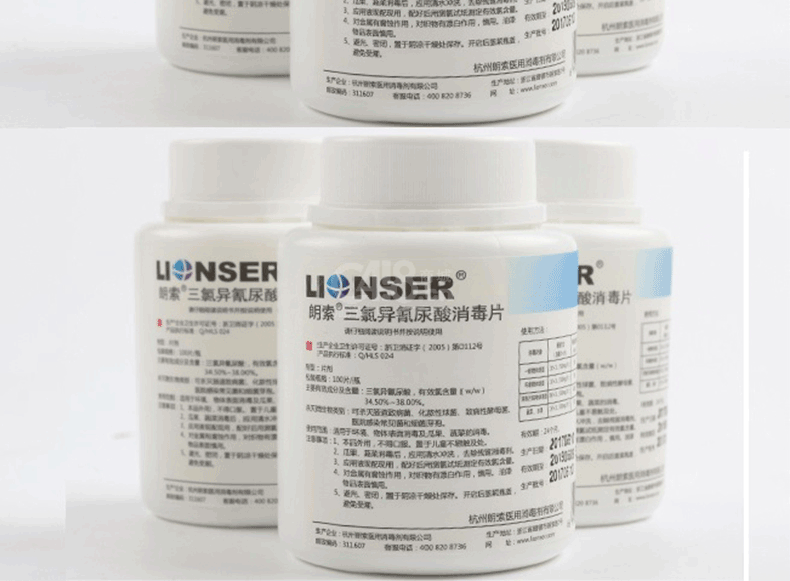 “LIONSER/朗索消毒”100片 朗索二氯異氰尿酸鈉消毒片 1瓶裝(泡騰片84家用冰箱馬桶拖地洗液)