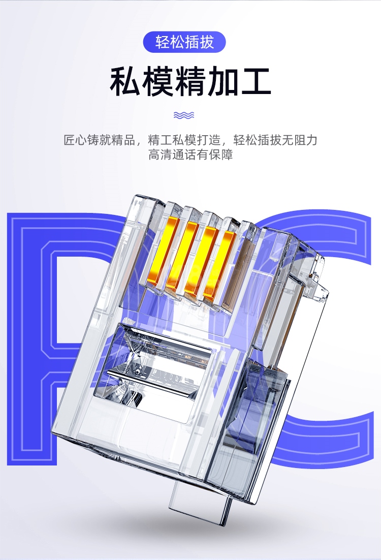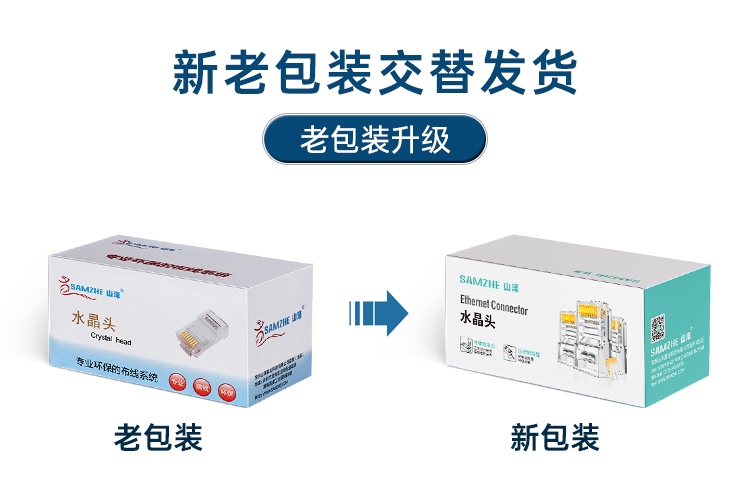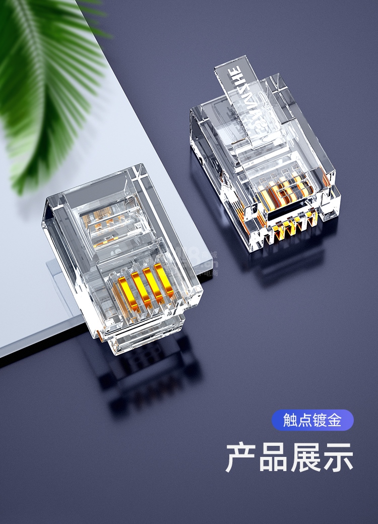 “SAMZHE/山澤”SJT-32100 6P2C電話水晶頭 1包裝(RJ11語音2芯電話線接頭100個)