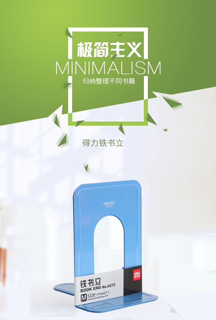 “deli/得力”No.9270 鐵書(shū)立 單付裝(藍(lán)色8.5英寸高21cm金屬書(shū)籍擋靠架辦公用品2片/付)